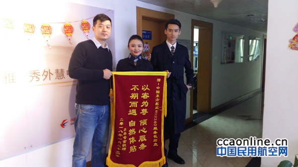 中国民用航空网通讯员何芳报道:冷冽的寒风吹不走来自旅客的暖暖温情,3月19日下午,东航江西客舱部收到一面来自白金卡苍先生从西安寄过来的锦旗,上面写着“以客为尊,倾心服务,不期而遇,自然体贴”。