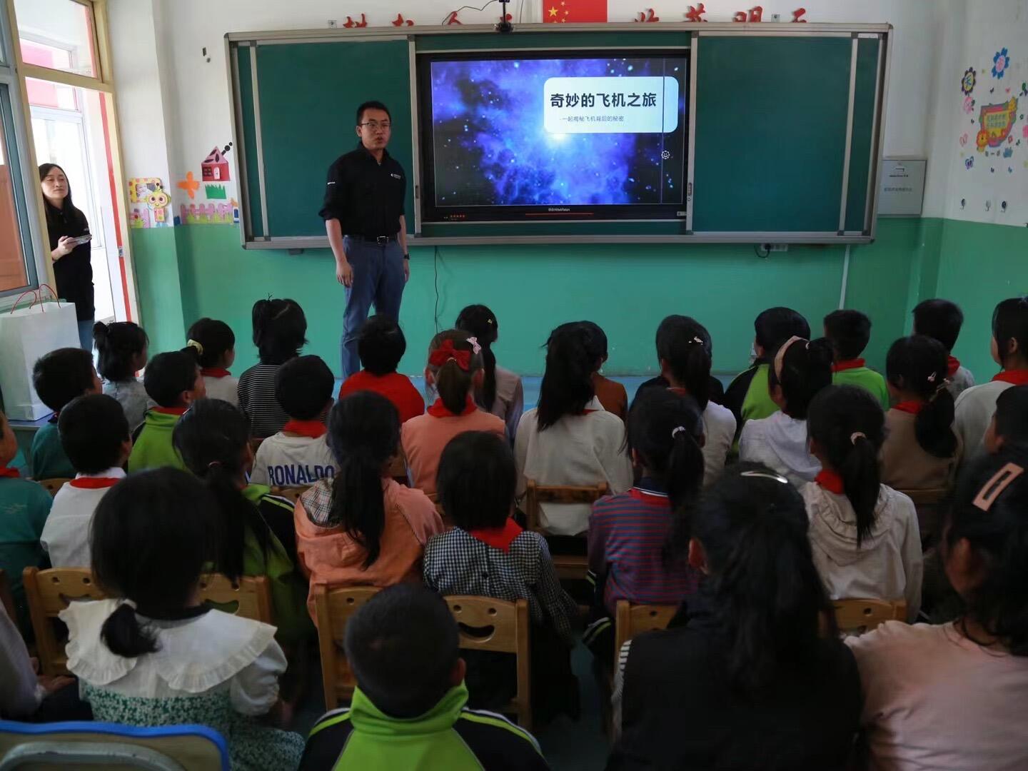 贺淼不仅是飞机维修和党团工作的“行家里手”,更是社会责任的 “积极践行者”。他牢记央企青年的使命担当,在公益事业的道路上阔步前行,用爱与温暖书写着青春的别样风采。2017年他主导成立的“隐形的翅膀”公益品牌,如同一束光,照亮了偏远乡村孩子们的梦想。七年间,他带领团队走进二十余所偏远地区学校,为上千名学龄儿童带去航空科普盛宴,让孩子们在知识的海洋中领略航空的魅力。一次次无偿捐赠,承载着对乡村振兴的美好期许,为乡村孩子们送去了希望与温暖。与甘肃省科技馆合作开展的航空科普讲座,更是为航空迷们带来了一场场精彩的知识盛宴,让航空梦想在更多人心中生根发芽。由于他在科普事业中的突出贡献,2023 年贺淼被甘肃省科协评为甘肃省首批科普专家。这既是对他公益事业的高度肯定,更是他践行社会责任的生动写照。