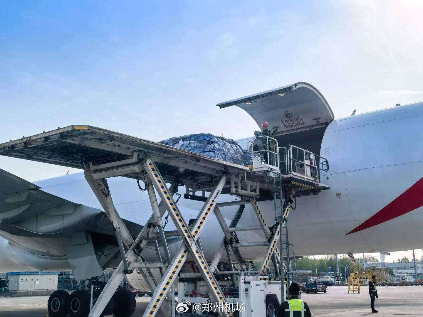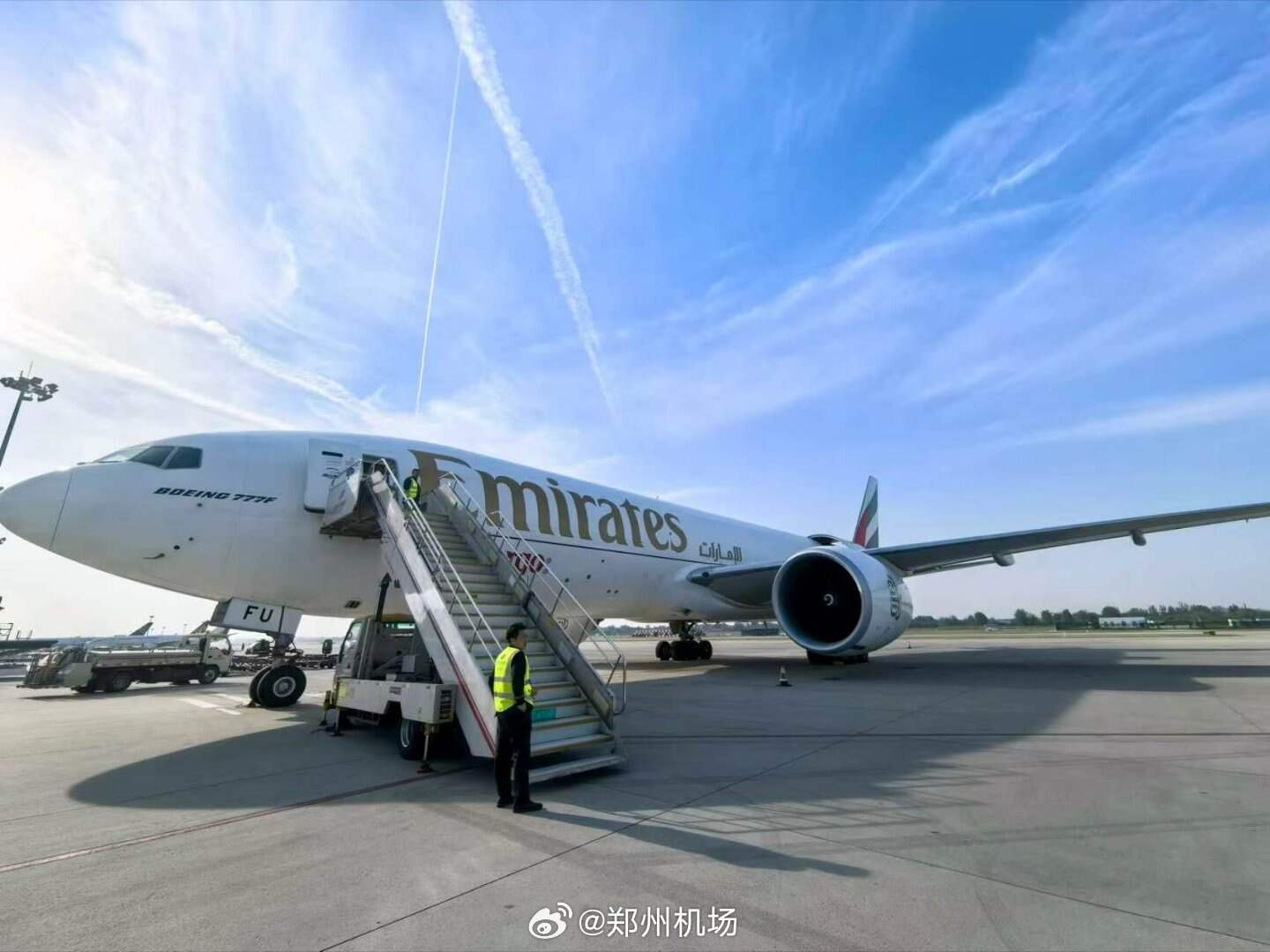 4月7日上午,阿联酋航空的一架B777全货机满载着跨境电商货物从郑州机场飞往迪拜,郑州机场首条直通迪拜的定期国际货运航线成功开通,这也是中东地区规模最大的航空公司——阿联酋航空首次在郑运营货运航线。