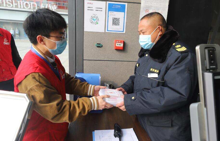 由东航四川分公司各级团组织共同组成的2组志愿者服务队走进航空港各小区,为疫情期间坚守在各小区入口的保安、环卫工人送去防护手套、洗护套装等防疫用品。在活动现场,为有效预防疫情,避免人员集聚、扎堆排队,四川分公司志愿者做好现场调控,分批次地分发了防疫用品。