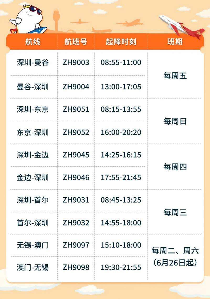 深航发布6月国际及地区航班计划,包括深圳往返东京、曼谷、金边、首尔以及无锡=澳门航线确定6月26日复航,2人及以上同行享最高直减100元优惠。