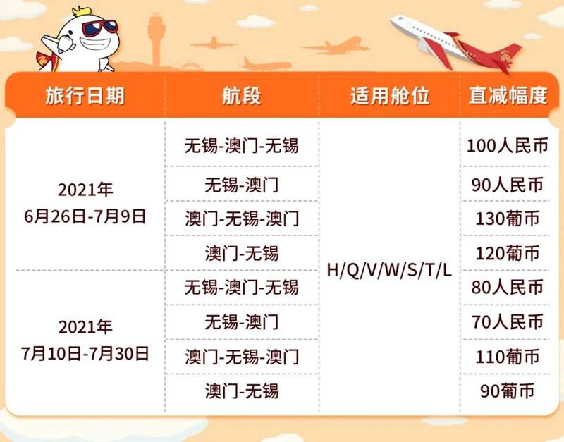 公告显示,即日起至2021年7月30日,旅客在同一日期、同一航班成行,2人及以上同时预订以下航线的指定舱位机票时,可享票面直减70-100元的优惠,成行人数不得少于2人,最多9人。