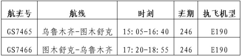 乌鲁木齐=图木舒克航线信息表