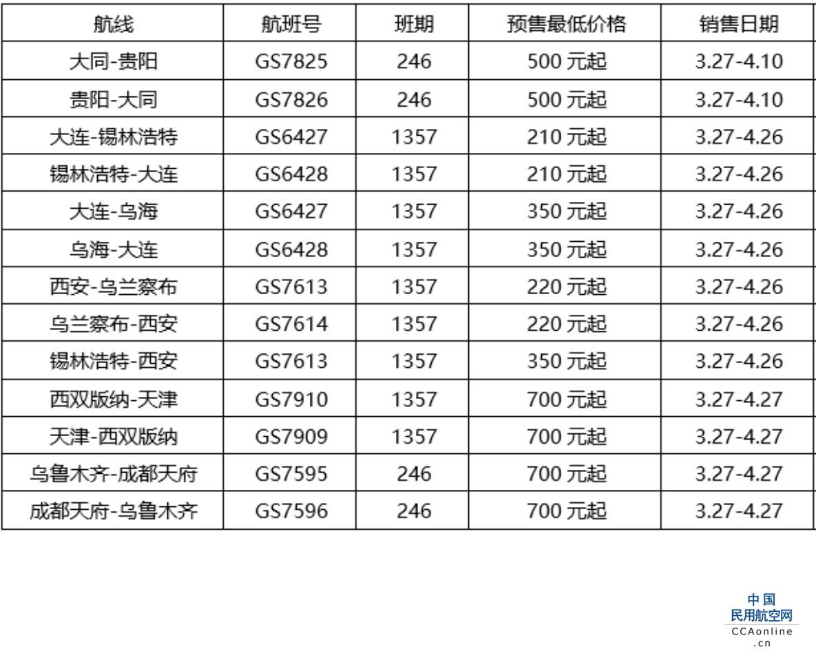 目前,换季航班现已陆续销售,具体航班信息和优惠出行价格请以天津航空官网、官方App、微信小程序、微信公众号等渠道查询为准。在此提醒广大有出行计划的旅客及时关注各地防疫政策要求,以及航线、航班时刻等信息,以免耽误行程。
