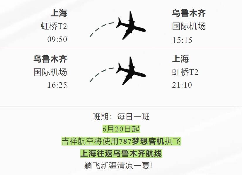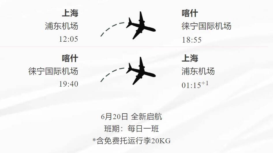 6月20日吉祥航空上海=喀什&伊宁航线全新开航 航空运输要闻 航线航班 25年5月9日 编辑 通讯员mk 取消关注 关注 私信 吉祥航空全新航线 上海=喀什 上海=伊宁 6月20日起 全新开航! 吉祥航空