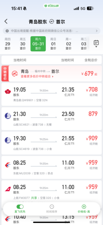 机票价格方面,端午假期位于五一长假和暑假之间,旅客出行相对划算。航旅纵横行业发展部总经理赵楠表示,端午假期国内机票平均价格相比五一假期更为实惠,热门航线存在较多捡漏机会。截至5月29日,航旅纵横机票页面显示,端午假期首日北京-曼谷、青岛-首尔等航线单程票价不超过1000元。有条件的旅客可以考虑端午拼假出行,以享受低成本高质量的旅行。