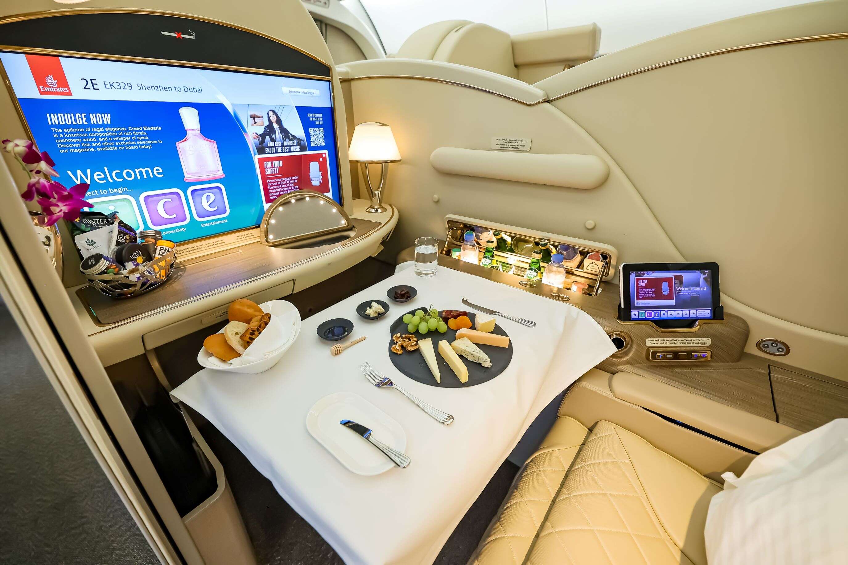 作为阿联酋航空首个采用全新版波音777-300ER四舱客机执飞中国内地的航线,从深圳出发的乘客将率先体验阿联酋航空创新标志性服务:配备隐私电动门的8个头等舱包间、40个1-2-1错落式布局、可直达通道的升级版商务舱席位、24个备受全球乘客青睐、采用2-4-2布局的豪华经济舱座位,以及260个宽敞的经济舱座位。往返深圳的乘客将享受到阿联酋航空获奖无数的机上服务和出类拔萃的飞行体验。阿联酋航空ice机上娱乐系统拥有超过6,500个多媒体娱乐频道,涵盖包括中文在内的40多种语言,乘客可以观看丰富的电影和电视剧、听音乐、玩互动游戏、听有声读物和播客,享受舒适无忧的“云端文化盛宴”,而精心研发的岭南风味餐食与窖藏级酒单,则让万米高空飘荡粤式美食的馥郁芬芳。