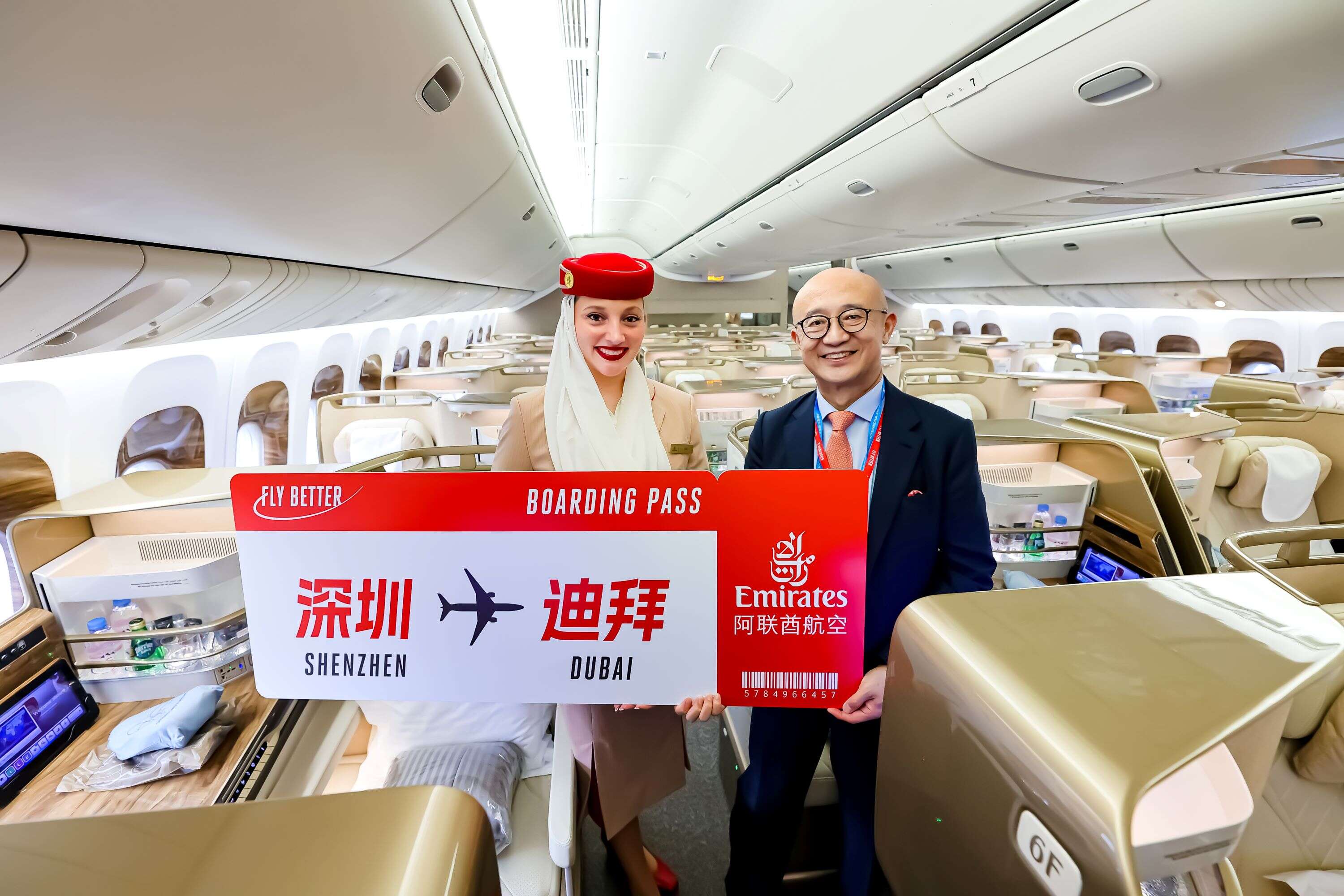 自2002年开通首条中国货运航线以来,阿联酋航空始终与中国发展同频共振。阿联酋航空副总裁兼首席商务官阿德南·卡兹姆表示:“深圳是中国最具活力与创新精神的城市之一,我们非常高兴能够开通直飞深圳的每日航班。这一重要里程碑彰显了阿联酋航空持续深耕中国内地市场、支持中国经贸及旅游发展宏图的不变承诺。新航线的开通是顺应中阿两国深化合作的大势之举,更是通过搭建空中通道,助力迪拜与粤港澳大湾区创新走廊——这一旨在吸引全球创新资源的国际化科创中心,实现无缝连接的战略布局。我们衷心感谢中国民用航空局、深圳机场集团及当地合作伙伴对此次航线开通给予的大力支持。我们期待为更多乘客和企业在深圳和迪拜之间、及往返我们不断扩展的全球航点搭建空中桥梁。”