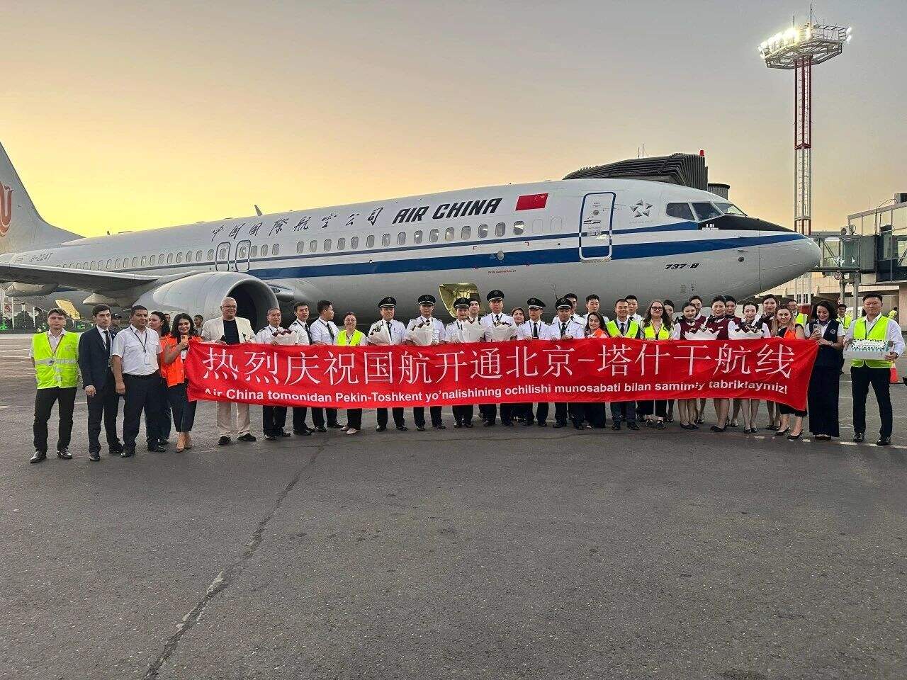 国航北京首都-塔什干航线正式开航 航空运输要闻 航线航班 7月21日 编辑 通讯员mk 取消关注 关注 私信 当地时间7月19日19时39分,CA777航班降落在乌兹别克斯坦塔什干国际机场,标志着国航北京首都-塔什干航线正式开航。 CA777航班抵达塔什干国际机场后,机组与当地工作人员合影庆祝首航成功。 这条航线使用波音737机型执飞,全程逾6.5小时。该航线每周执行3班,每周二、四、六执行。在时差方面,塔什干为世界时区东五区,比北京时间晚3小时。 国航国际航线航班