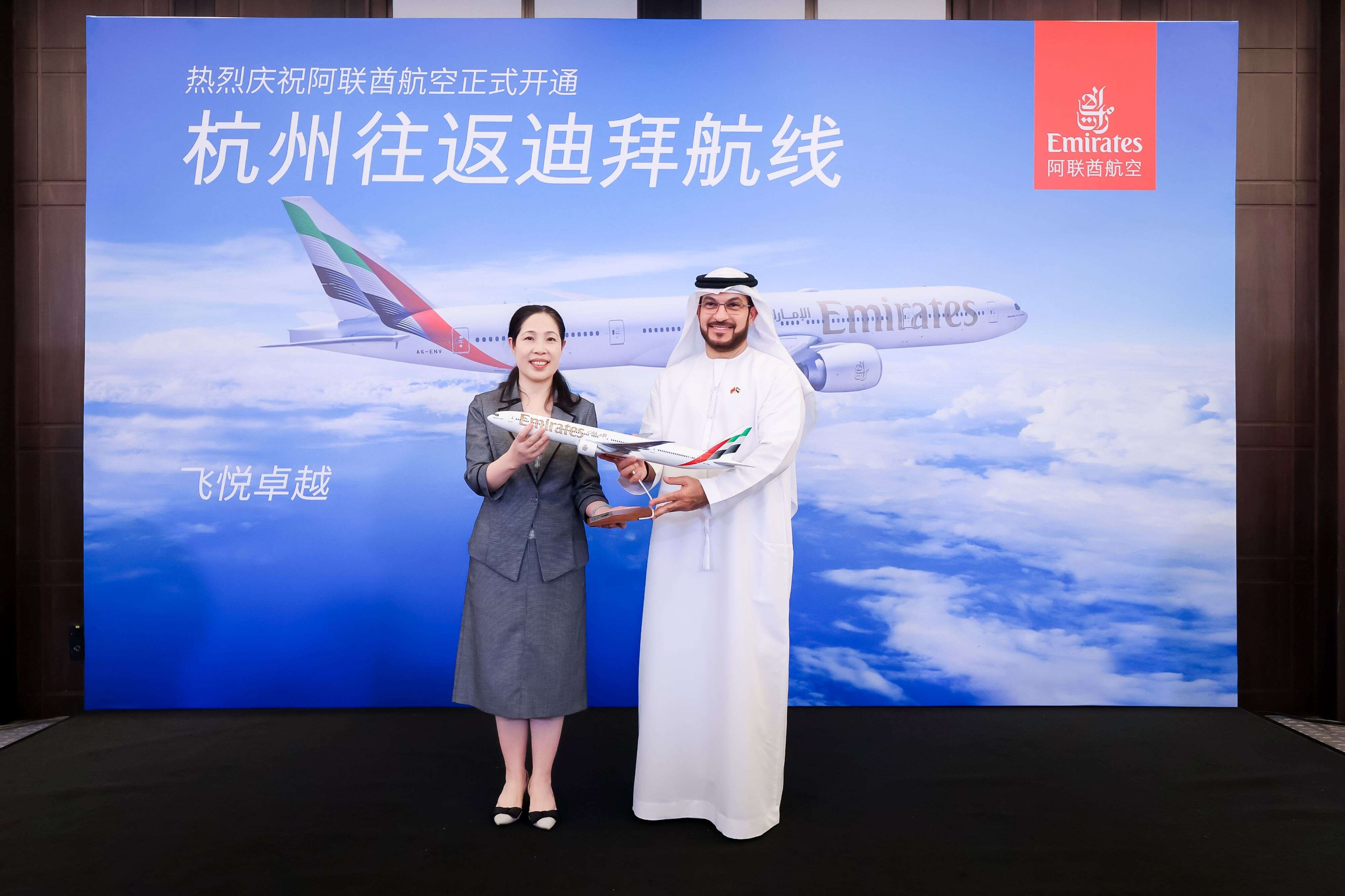 杭州机场市场部负责人表示:“我们热烈欢迎阿联酋航空正式开航杭州!作为全球航空业的领军企业,阿联酋航空以其卓越的服务品质、高效的运营能力和覆盖六大洲的航线网络,在国际航空市场占据重要地位。阿联酋航空此次开通杭州航线,是杭州机场深入贯彻落实省委省政府“三最”行动改革方案的重要成果,有利于进一步提升杭州机场国际航线网络通达性;有利于打造更高标准的服务样板;有利于加速建设世界一流的现代化国际航空枢纽。”