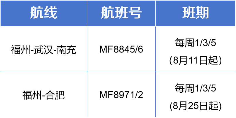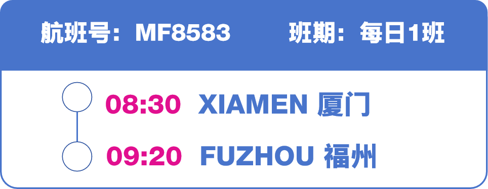 9月8日起,厦航恢复厦门⇋福州航线 航空运输要闻 航线航班 8月1日 编辑 通讯员mk 取消关注 关注 私信 9月8日起,厦航恢复 厦门⇋福州航线 每日一班,支持行李直挂, 便捷中转,带您畅游欧美澳! 近期还将新开、恢复以下福州始发航线 敬请期待! 厦门航空
