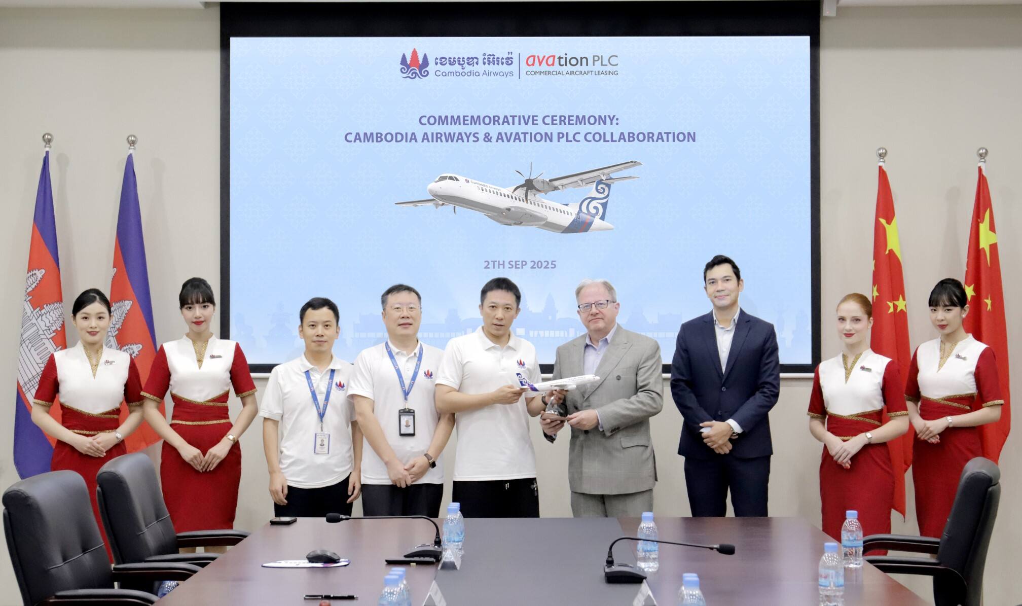 2025年9月2日上午,柬埔寨航空与新加坡商用飞机公司AVATION公司正式签署合约,双方同意就AVATION公司旗下的全新ATR72-600型飞机达成合作协议。柬埔寨航空董事兼CEO Edison Duan先生与AVATION公司首席商务官(CCO)Soeren Ferre先生、市场营销副总裁Franck CHEUNG先生共同出席了会议。