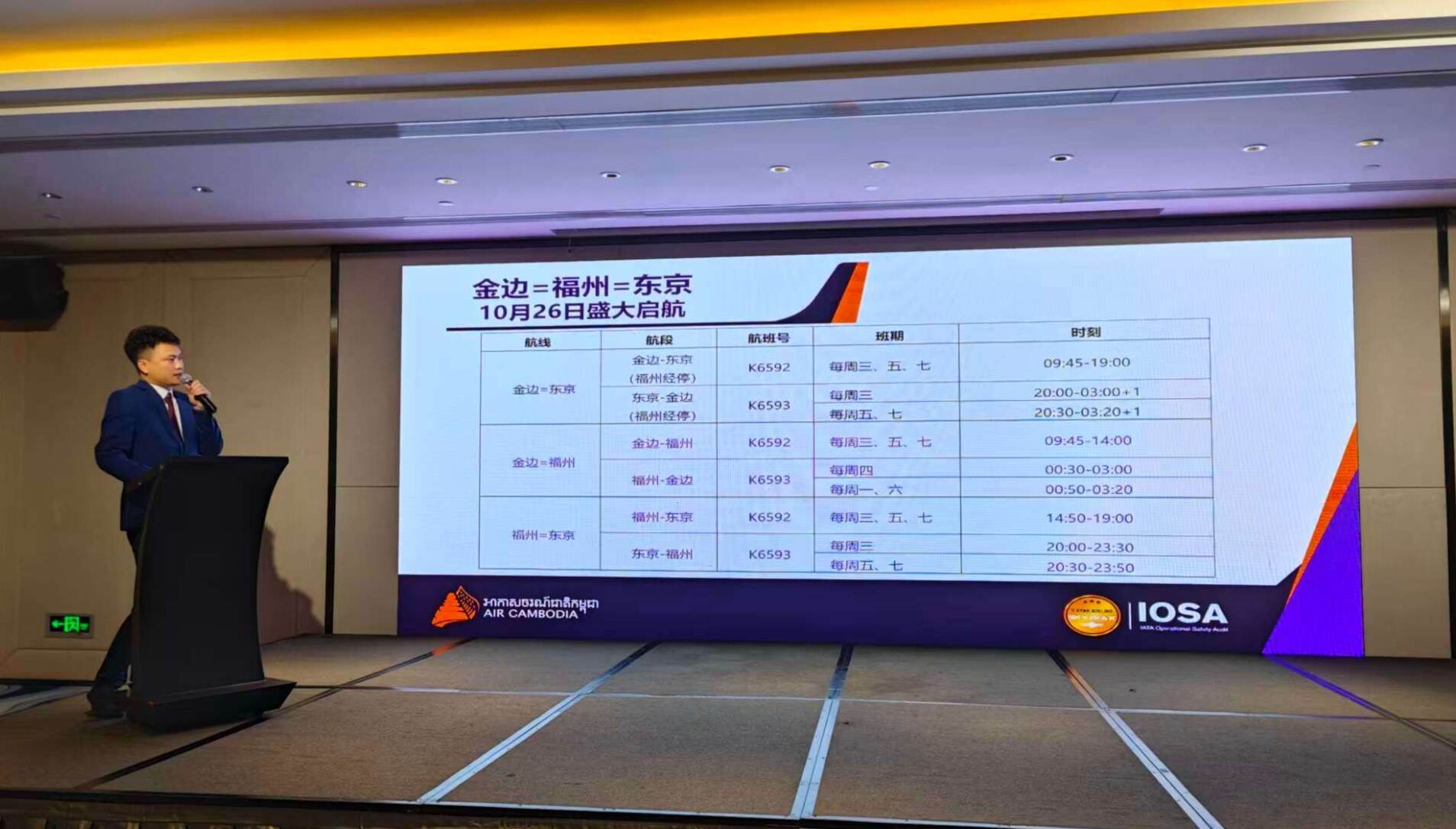 9月15日下午,柬埔寨国家航空在福州举行“金边=福州=东京”新航线发布会,宣布该航线将于10月26日正式启航。这标志着福建省首条第五航权客运航线成功落地,成为福州机场拓展国际航线网络的重要里程碑。