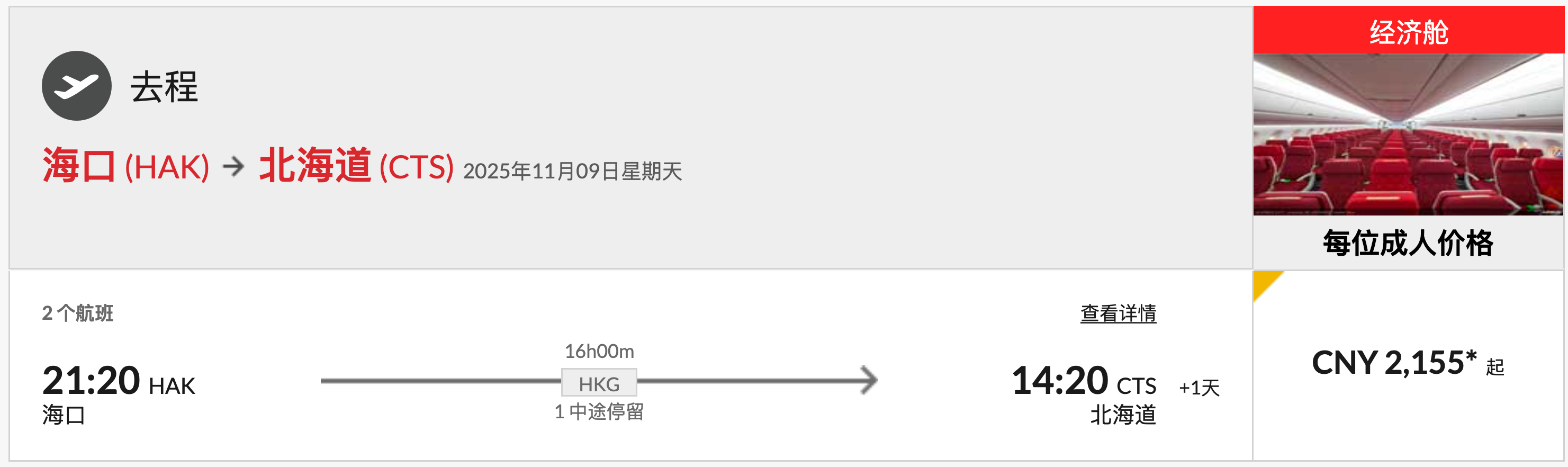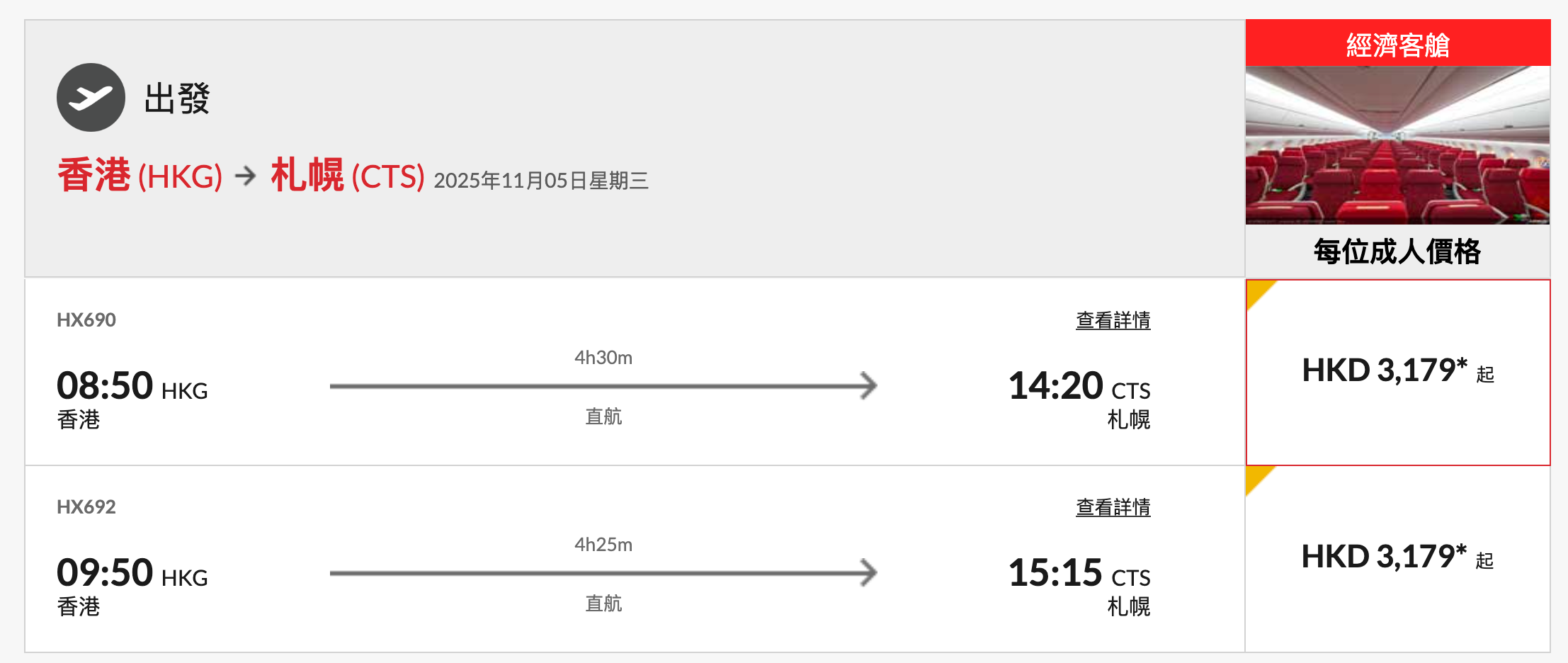 香港航空增班北海道札幌航线 航空运输要闻 航线航班 10月23日 编辑 通讯员mk 取消关注 关注 私信 为提供更灵活的航班选择,2025年11月3日至2026年3月15日,香港航空飞往北海道札幌的航班更增至每日 2 班。 相关推荐: 阿尔及利亚航空推迟阿尔及尔-北京首都航线增班计划 成都=奥克兰,12月7日起直飞 山西即将开通太原=长沙=新加坡航线 东航南京—巴黎直航10月29日起恢复运营 香港航空国际航线航班