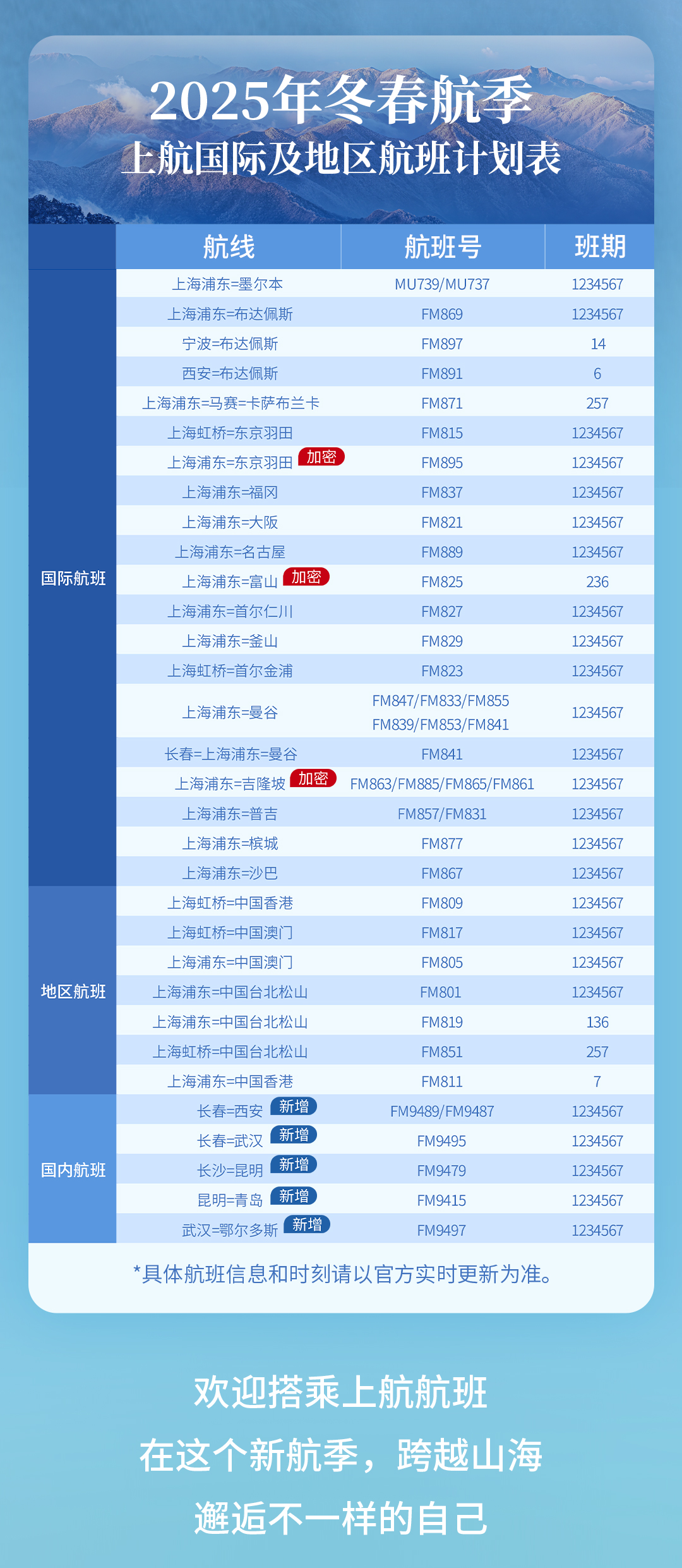 上海航空冬春航季 | 新航季 新旅程