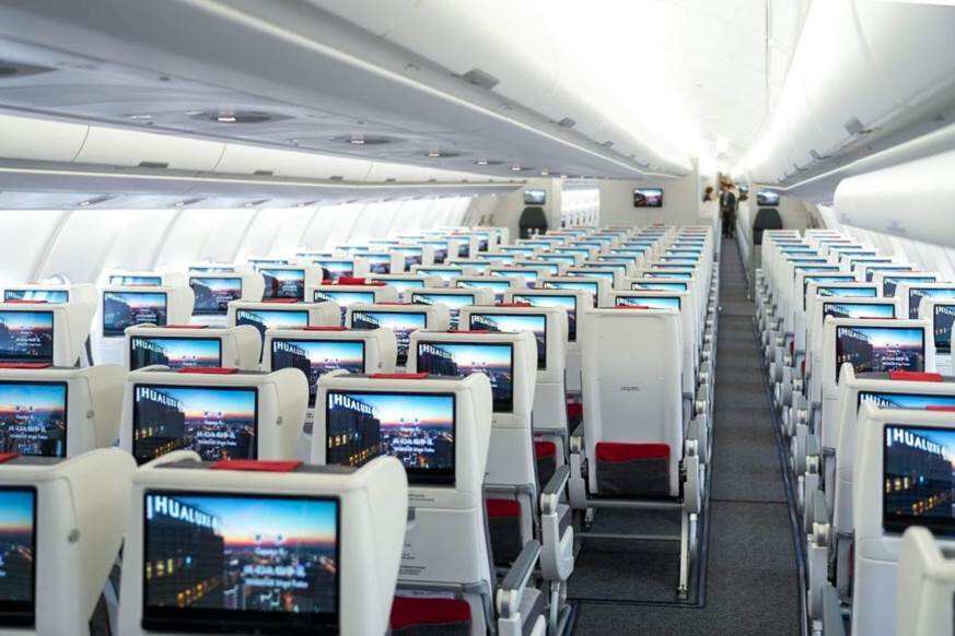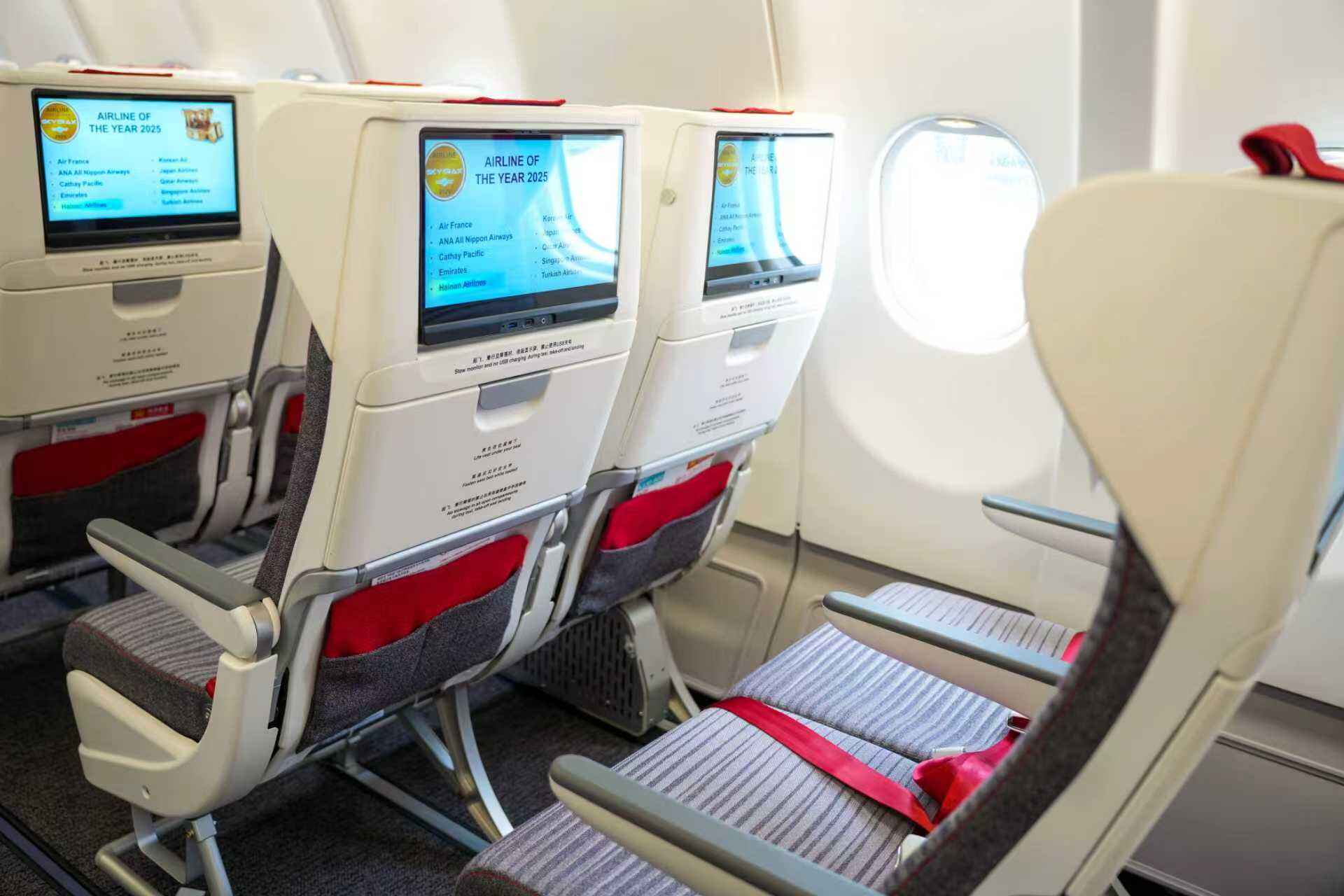 海南航空此次全新引进的空客A330飞机共设301个座位,其中公务舱24个座位,经济舱277个座位。为了让所有舱位的旅客都能享有舒适的旅途空间,在客舱布局上,公务舱采用了1-2-1的交错式布局,确保每位乘客均能直通走廊,在尊享一步入廊的便捷与良好个人隐私的同时,起身活动也更为自如。经济舱座椅间距达30-34英寸,为旅客提供了舒展双腿的宽敞空间。值得一提的是,本次海南航空A330新飞机客舱的经济舱座椅选用了航空工业的国产座椅,这也是国产座椅首次被纳入国际主流宽体机选型目录。此外,广受赞誉的海南航空“梦之羽”客舱内饰也被完整应用于此架空客A330新飞机,从客舱的色调、灯光到材质,共同营造出温馨、舒缓的感官体验。机上还配备了业内先进的4K超高清屏幕,且全舱支持高功率USB-C接口和蓝牙连接,让娱乐与充电体验全面升级。