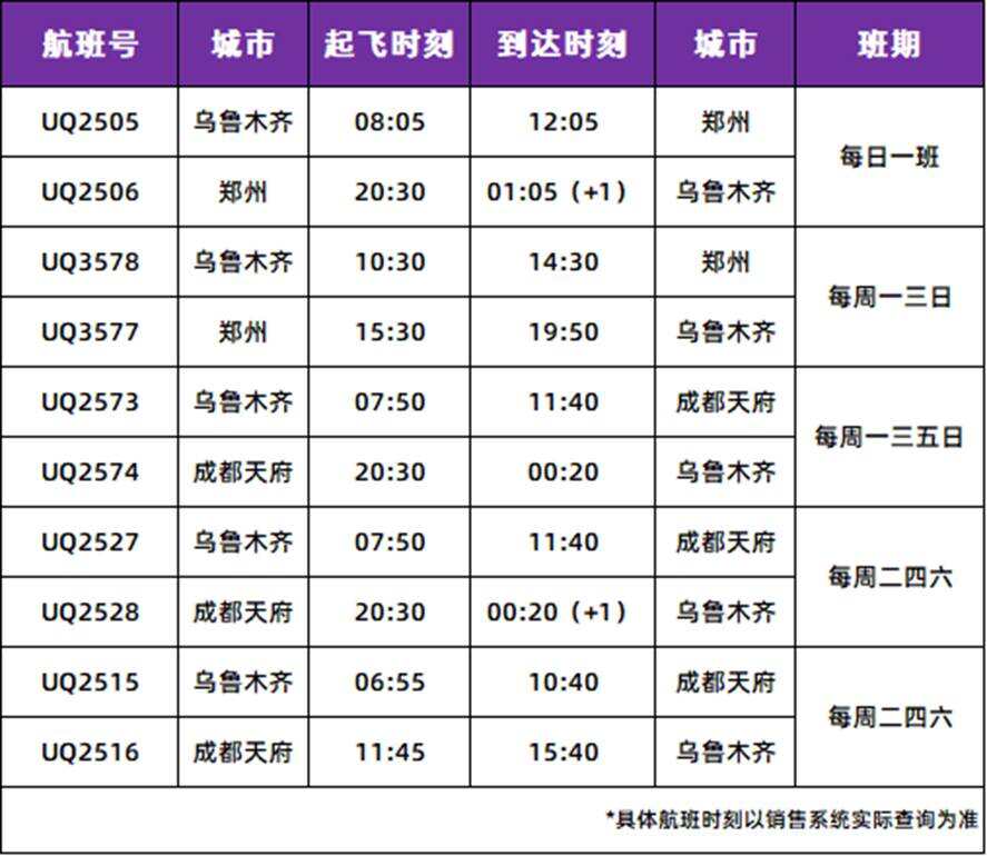 郑州、成都分别是中原地区、西南地区的综合交通枢纽,拥有立体高效的交通体系,春运期间将承载大量跨区域探亲、旅游及商务客流。为精准匹配市场需求,强化新疆与疆外核心区域的航线衔接,乌鲁木齐航空计划2月2日起围绕郑州、成都加大运力投放,乌鲁木齐=郑州、乌鲁木齐=成都天府航线均在每日一班的基础上再增加三班,加密后班期可达每周10班。