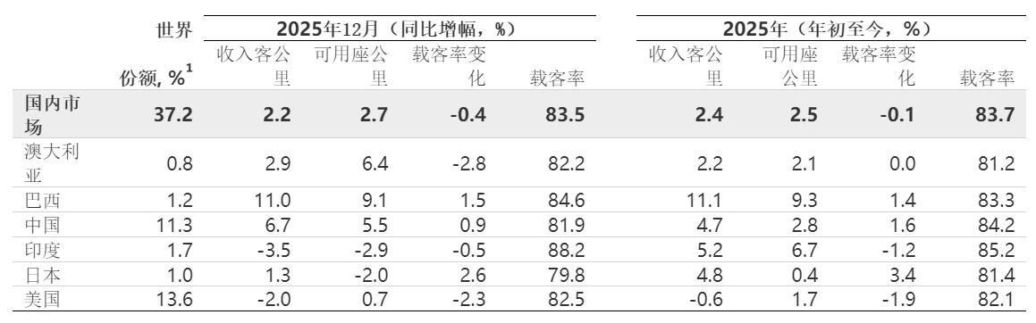 | 航空客运市场概览 - 2025年12月 | ||||||||||