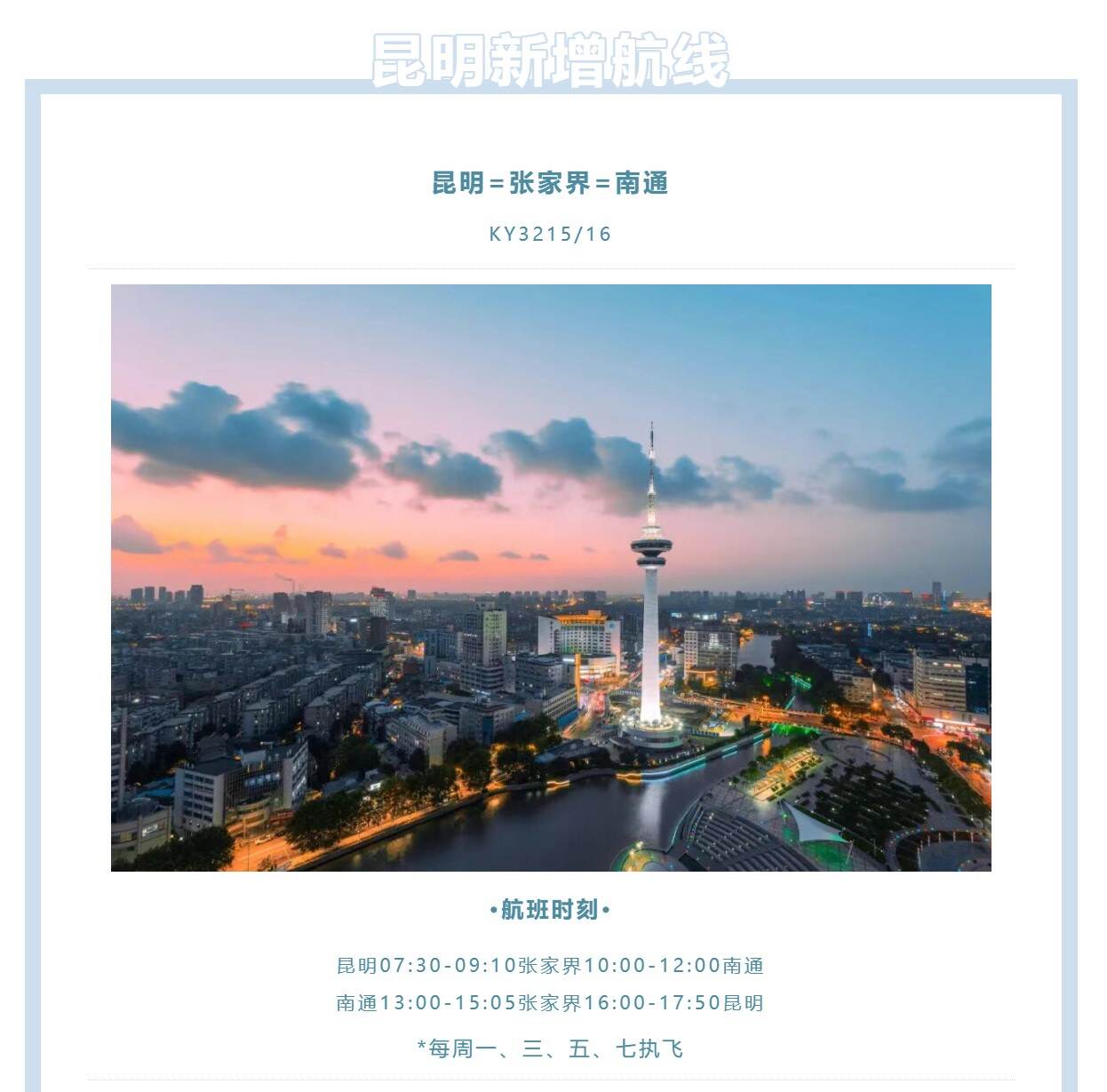 昆明航空夏秋航线上新 航空运输要闻 航线航班 3小时前 编辑 通讯员mk 取消关注 关注 私信 相关推荐: 2026夏秋航季:山航新增加密多条航线,“山航快线”全面覆盖成都双机场 深航夏秋季国际航班计划公布 苏南瑞丽航空夏秋航季新增10条热门航线 海南航空夏秋航季杭州进出港 新增重庆、青岛、大连三条直飞航线 新海航北部湾航空2026夏秋航季焕新启航 新开十余条航线助力提升出行体验 航班换季昆明航空
