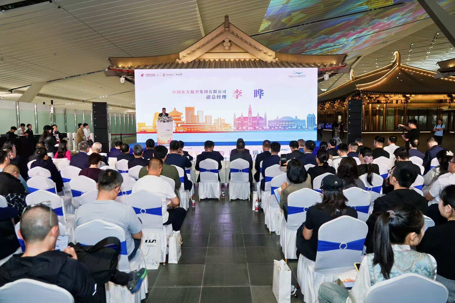 4月19日下午,东航在西安咸阳国际机场T5航站楼隆重举办了“飞跃长安古韵 邂逅多瑙乐章”西安—维也纳首航启航仪式。仪式上,东航正式发布新航线信息,全面推介西安枢纽航线网络布局及特色航空产品,向社会各界展示了助力区域对外开放的航空实力。