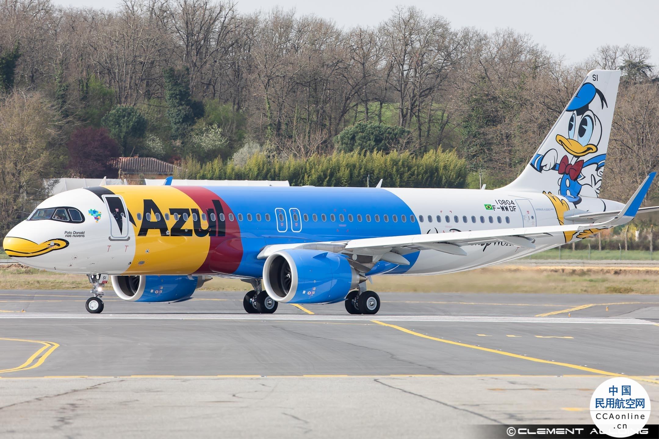 “唐老鸭“彩绘飞机亮相 航空运输要闻 22年3月29日 编辑 通讯员mk 取消关注 关注 私信 据推主@Clément Alloing发布,巴西蔚蓝航空Azul的A320neo披上了迪士尼彩绘涂装,此次选择的角色是迪士尼经典卡通形象——唐老鸭。 飞机彩绘