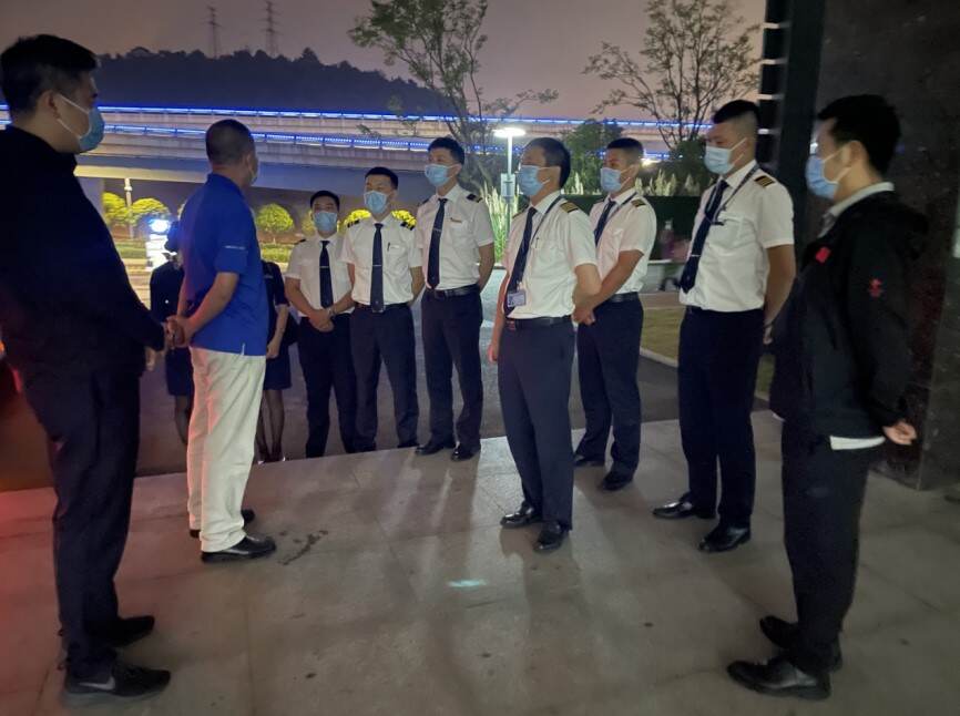 公司党委委员、副总经理赵勇深入基层,于4日凌晨分别看望慰问最后一班返港航班机组人员凌晨五点送出执行第一班航班的机组,为他们加油打气,并叮嘱疫情期间要落实防疫措施做好个人防护,保护好旅客的生命安全和身体健康。