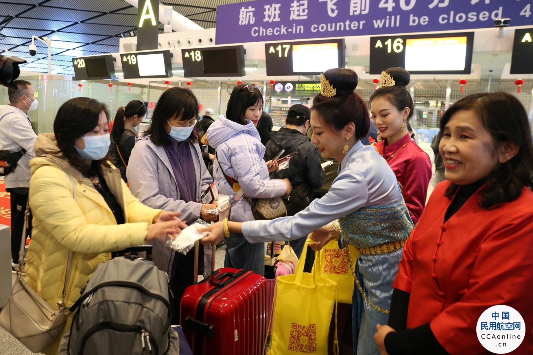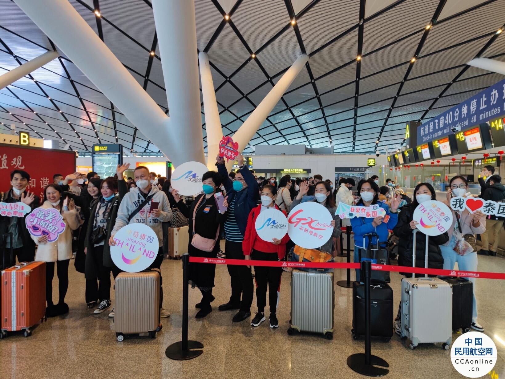 北部湾航空作为广西首家本土航空,2019年起已开通南宁至新加坡、曼谷、河内等国际航线,利用全国航线网络吸引旅客来桂中转至东南亚,前期因受疫情影响暂停运行。随着国家出入境政策和国际客运航班管控措施的相继调整,2月6日,国家文化和旅游部试点恢复全国旅行社及在线旅游企业经营中国公民赴有关国家出境团队旅游和“机票+酒店”业务;经过全力筹备和严谨组织,北部湾航空GX8907/8南宁=曼谷航班于2月6日顺利复航,同时迎来广西首批跨境旅游团的顺利发团。