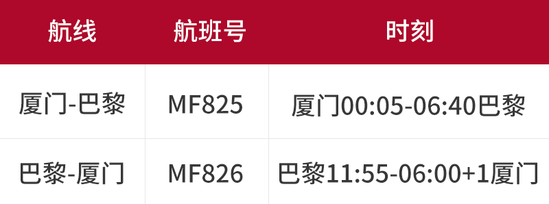 7月6日,厦门-巴黎直飞航线启航 航空运输要闻 航线航班 来源:厦门航空 23年7月3日 编辑 通讯员mk 取消关注 关注 私信 7月6日,厦门航空厦门-巴黎航线首航,每周四直飞。 航旅资讯厦门航空国际航线航班
