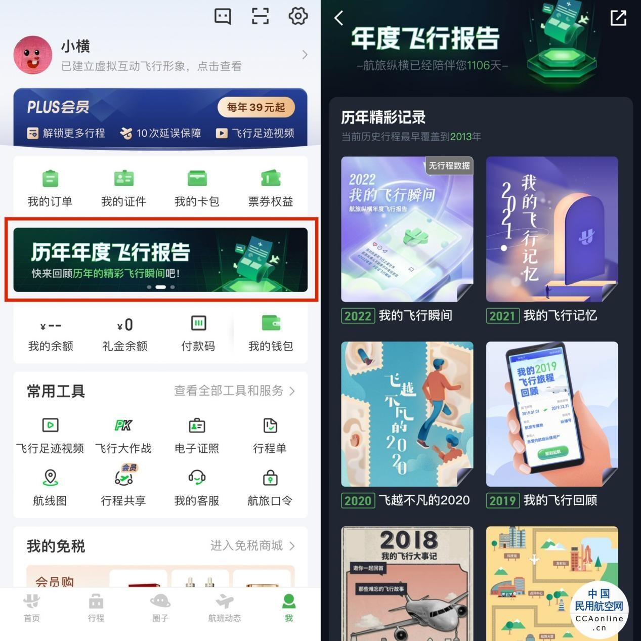 为优化升级旅客出行体验,方便旅客管理历史行程,近期,航旅纵横APP上线“历年年度飞行报告”功能。旅客可在航旅纵横APP-我-点击进入活动页面,查看自己2016-2022年的年度飞行报告,盘点历年精彩飞行瞬间,珍藏独一无二的飞行记忆。