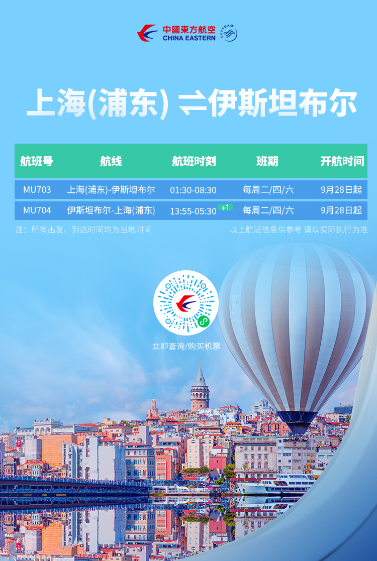 东航“上海-伊斯坦布尔”9月28日开航 航空运输要闻 航线航班 23年9月15日 编辑 通讯员mk 取消关注 关注 私信 东航将于2023年9月28日起,新开“上海-伊斯坦布尔”往返直飞航线,为两座世界名城、全球重要航空枢纽搭起新的空中通衢。 东航