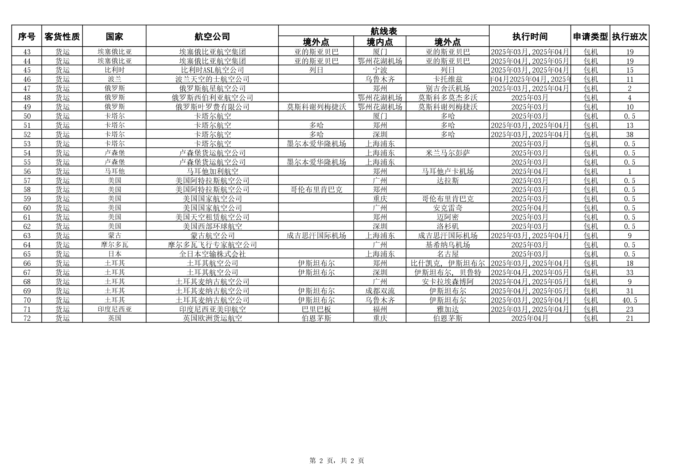 2025年3月国际航线审批结果公开 航空运输头条 航线航班 4月11日 编辑 通讯员mk 取消关注 关注 私信 据民航局运输司消息,现将2025年第一季度国际航线经营许可情况及2025年3月国际航线临时加班和包机审批情况予以公布(请详见附件2、3)。 附件2:国内公司国际航线加班包机 附件3:境外公司国际航线加班包机批复3月 国际航线审批