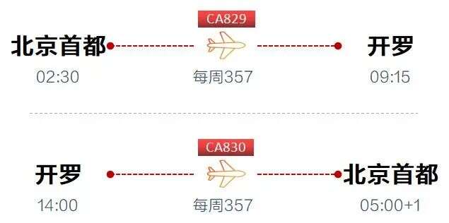 国航将新开北京⇌开罗直飞航线 航空运输头条 航线航班 25年6月20日 编辑 通讯员mk 取消关注 关注 私信 2025年7月9日起,国航将开通北京首都⇌开罗直飞航线,航班号为CA829/30,班期为每周三、五、日,由空客A330客机执飞。 具体信息如下: *以上时间均为当地时间,具体情况以实际执行为准。 国航国际航线航班