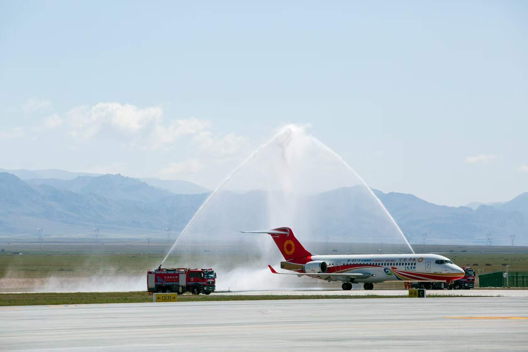 2025年8月2日,成都航空EU2417乌鲁木齐-巴里坤航班穿越天山雪峰,在国产C909飞机执飞的 “巴里坤号”主题飞机上成功举办首航客舱活动。这架承载巴里坤哈萨克自治县“奔腾”精神的“空中文化使者”,以机身雪山、骏马、湖泊、草原、古城交织的画卷,搭载旅客开启了“翼展天山·首航巴里坤”的沉浸式边疆文化之旅。