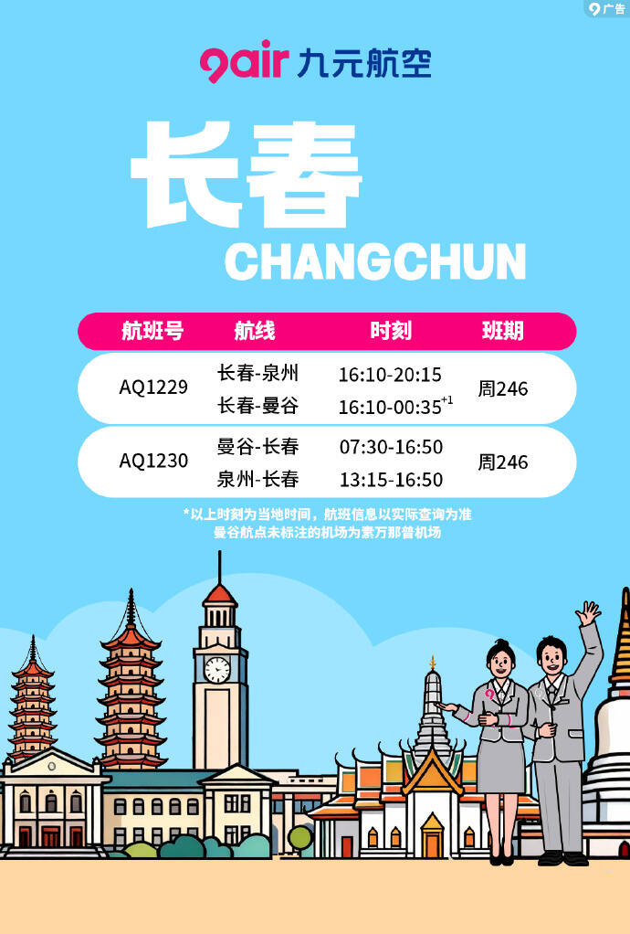 九元航空新开两条直飞曼谷航线 航空运输头条 航线航班 2小时前 编辑 通讯员mk 取消关注 关注 私信 九元航空12月10日起陆续新开沈阳-曼谷、长春-曼谷国际航线,两条航线均经停泉州,为北上玩雪和南下避寒的“候鸟”游客提供便捷出行新选择。 相关推荐: 自贸港封关倒计时:12月7日,海南航空琼海—吉隆坡国际航线正式启航 顺利抵达布宜诺斯艾利斯 全球最长单程航线完成首航 东航“上海—奥克兰—布宜诺斯艾利斯”航线正式启航,“国博号”彩绘机执飞首航,开启跨洋文化之旅 南航广州至马德里航线正式开通 东航11月30日开航“北京大兴—马斯喀特”直飞航线 九元航空国际航线航班