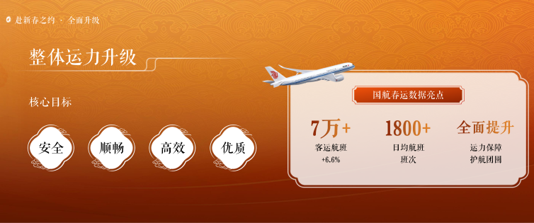 国航将以责任担当彰显央企使命,持续回应旅客关切,以更高标准、更暖服务,守护春运期间每一段承载团圆与期待的美好旅途。