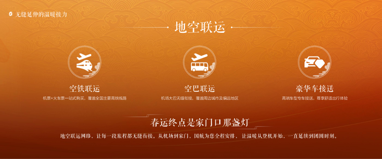 此外,国航持续完善“空铁联运”“空巴联运”网络,并在部分城市提供“豪华车接送”服务,进一步延伸地面交通衔接。