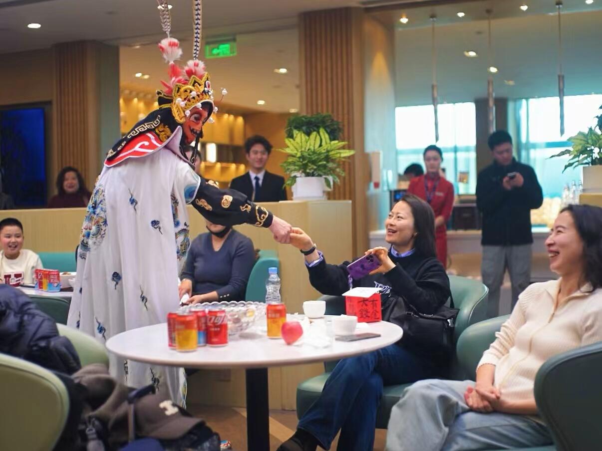 在旅客服务上,东航加大了在值机区和航班登机口等处的人手力量,做好旅客引导、答复旅客问询、协助旅客办理乘机手续,并重点关注年老、年幼、行动不便的特殊旅客的出行需求。此外,东航也以“马年新春”元素装饰机场贵宾室和服务柜台,并在客舱中提供“‘全家福’什锦鱼圆”“‘步步高升’腊肉炒年糕”“‘马到成功’慕斯蛋糕”等新年特色餐食,让旅客在旅途中感受浓厚年味。