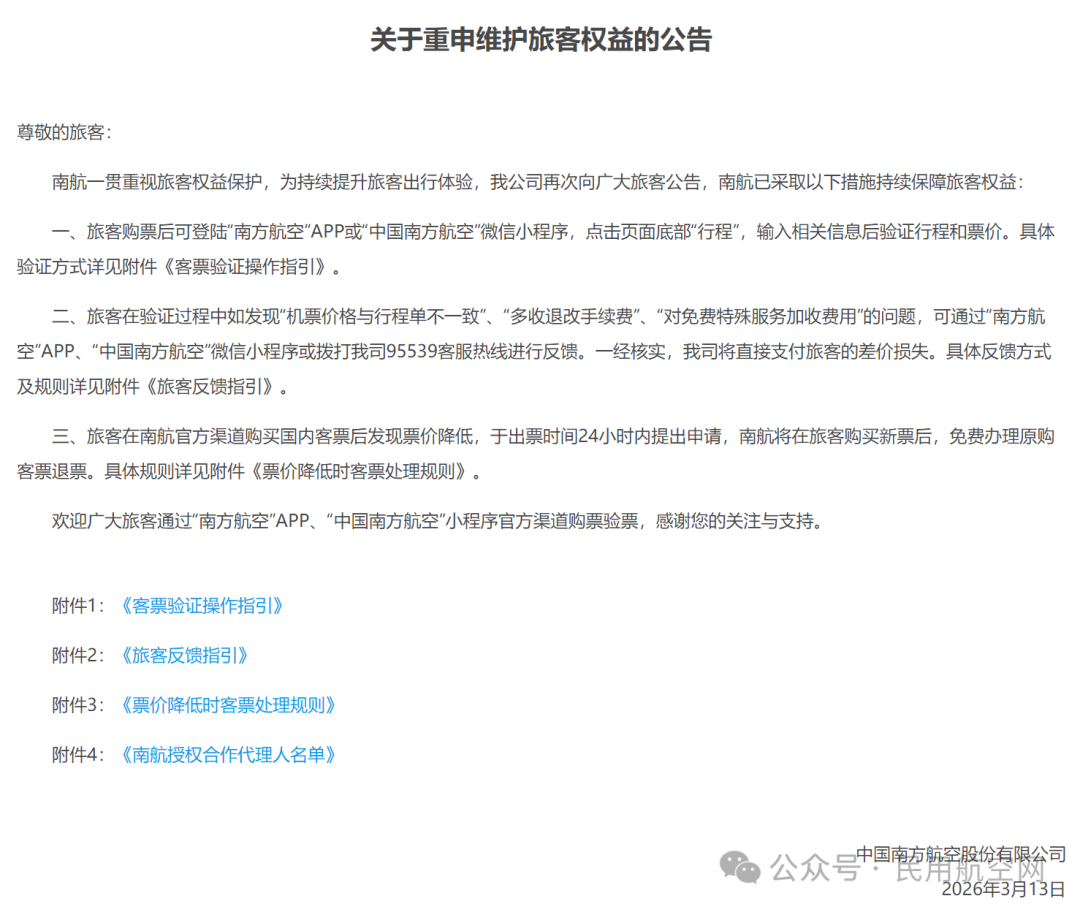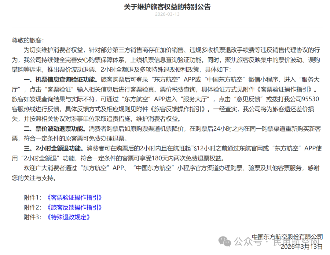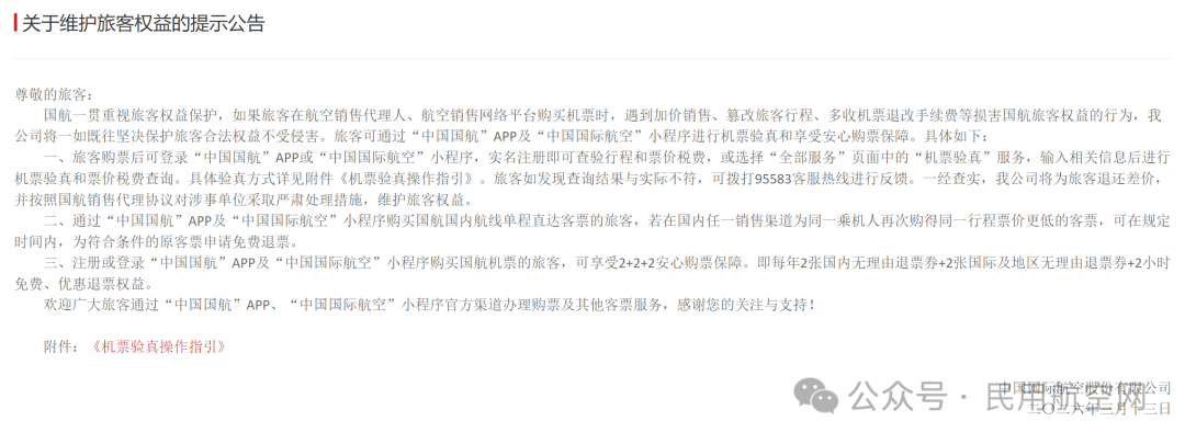 三大航在公告中均明确,官方渠道为客票验真、权益反馈的指定入口,旅客购票后可通过官方平台一键核对相关信息,从源头防范“隐形加价”“虚假优惠”等问题。