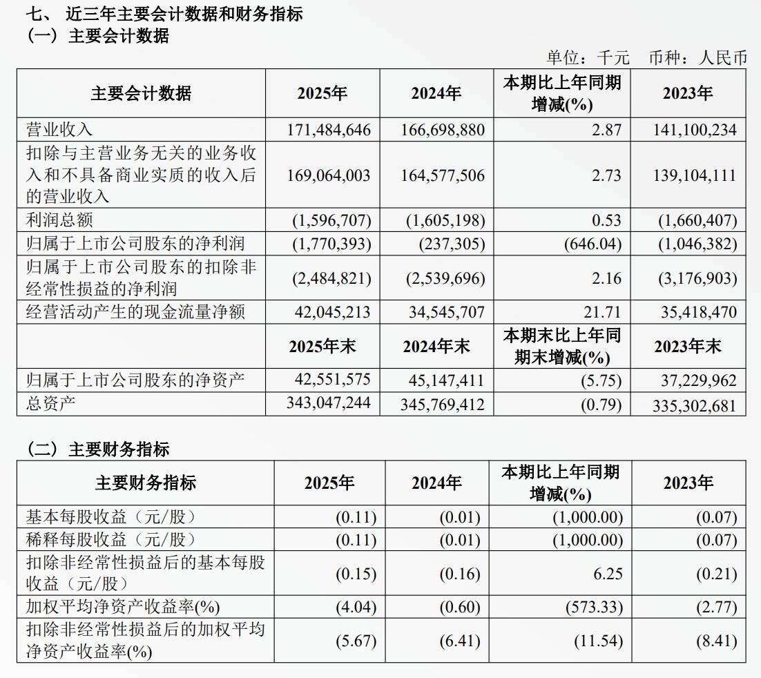报告显示,2025年国航实现营业收入1714.85亿元,同比增长2.87%,业务规模保持稳定扩张。但全年归母净利润为-17.70亿元,亏损幅度有所扩大。从现金流来看,公司经营活动产生的现金流量净额达420.45亿元,同比增长21.71%,整体现金流状况稳健,具备较强的运营保障能力。截至年末,国航总资产3430.47亿元,资产负债率88.56%,累计未分配利润亏损324.87亿元,本年度不进行利润分配。