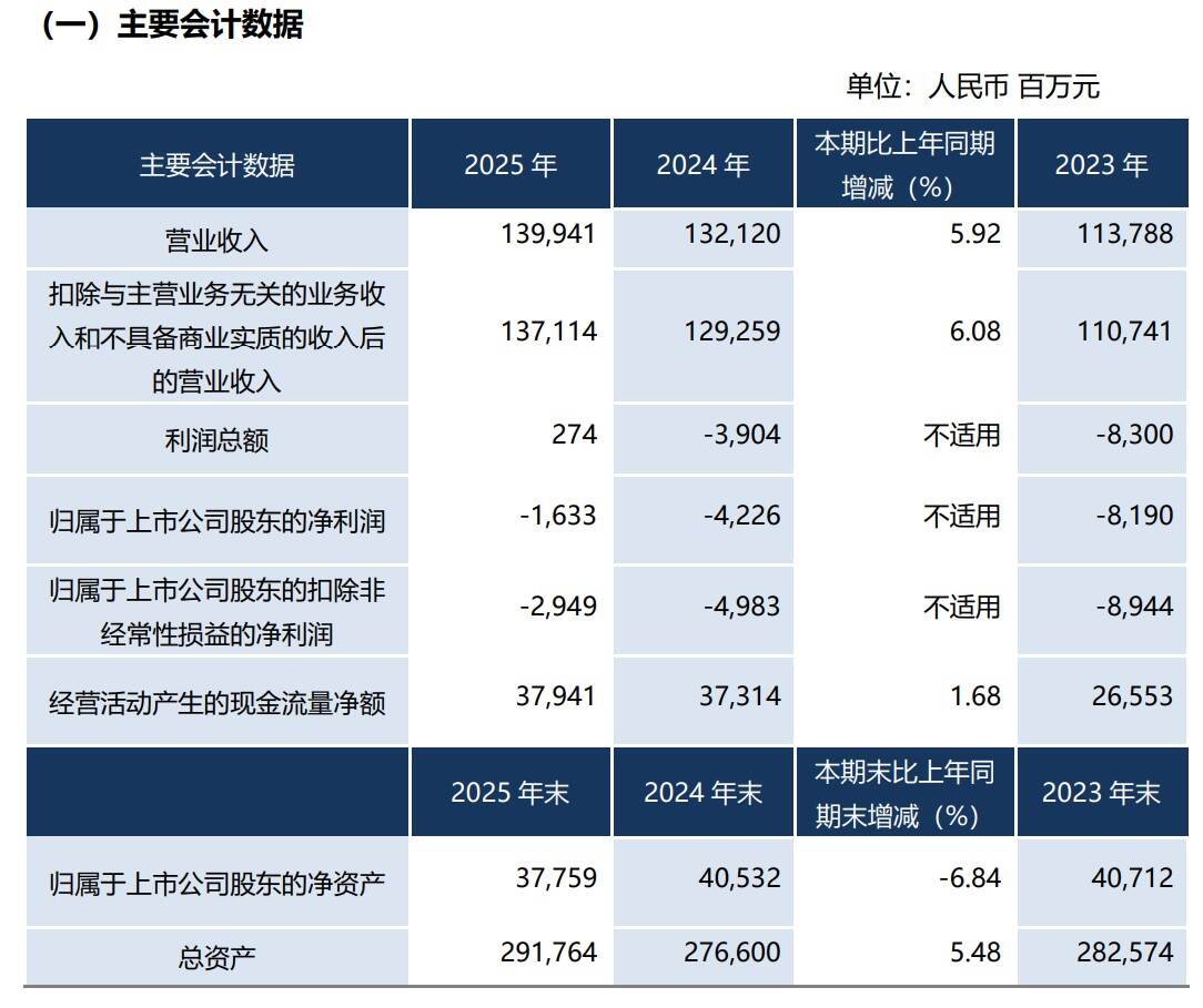 报告显示,2025年东航实现营业收入1399.41亿元,同比增长5.92%,营收规模持续扩大。归属于上市公司股东的净利润为-16.33亿元,较2024年的-42.26亿元大幅减亏25.93亿元,减亏成效显著;利润总额2.74亿元,成功实现扭亏为盈,盈利修复步伐明显加快。全年经营活动产生的现金流量净额379.41亿元,同比小幅增长1.68%,充足的现金流为机队更新、航线拓展和债务结构优化提供了坚实保障。截至年末,公司总资产2917.64亿元,同比增长5.48%,资产负债率86.69%,仍处于行业较高水平,财务杠杆压力有待持续改善。受累计未弥补亏损影响,公司2025年度不进行利润分配,也不实施资本公积金转增股本。