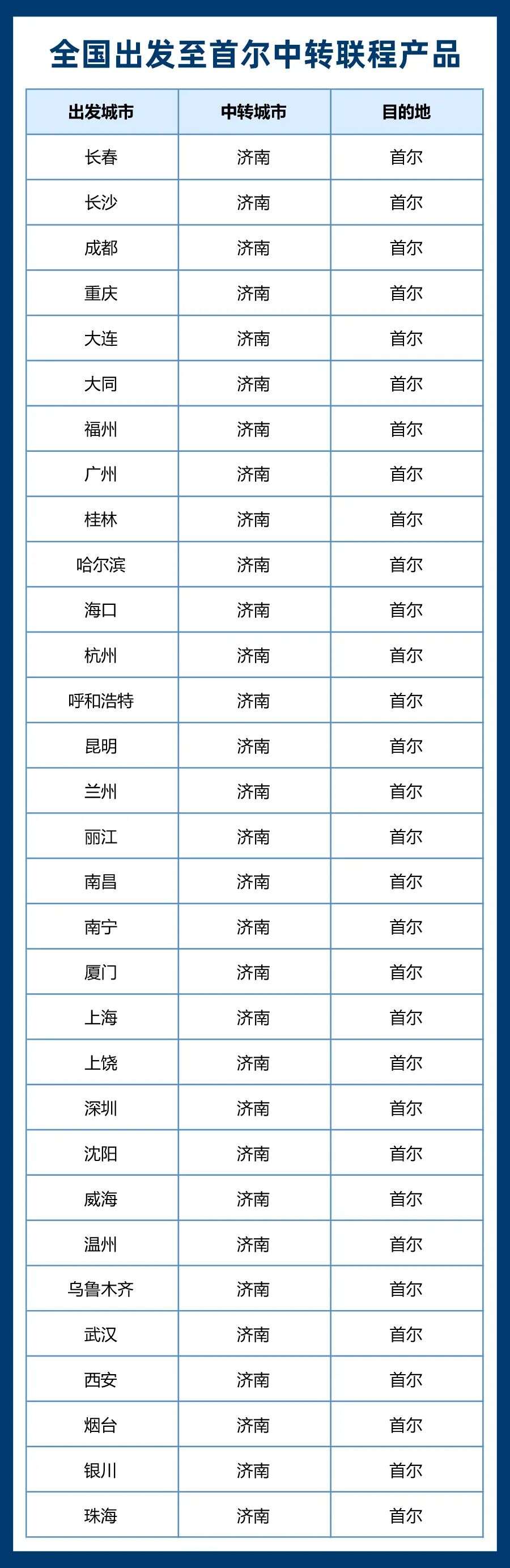 如果您所在的城市无直飞首尔航班,可通过购买山航联程机票由济南中转飞抵首尔,山航官网、小程序、95369客服热线均支持预订。