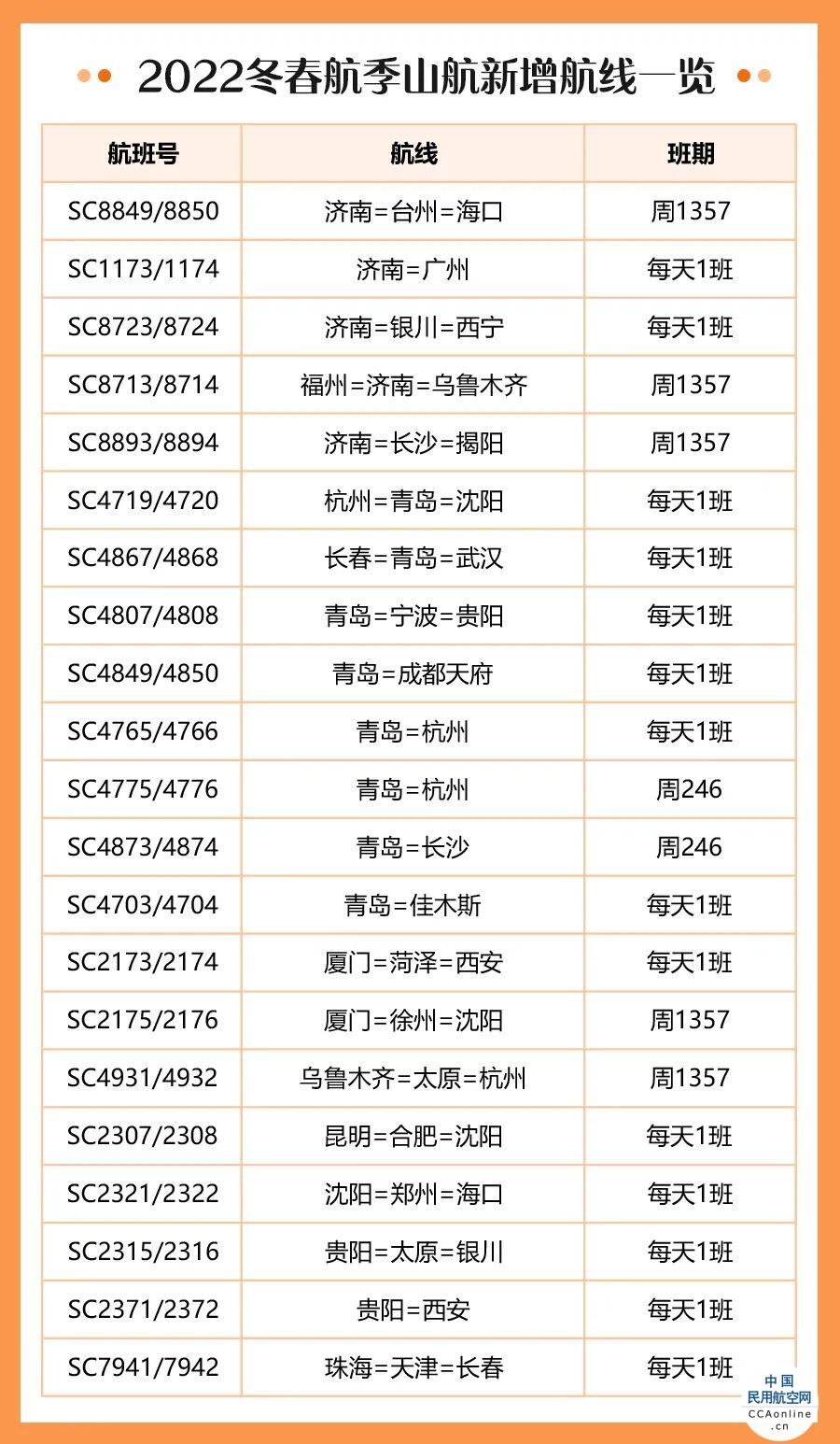 本月底全国民航将迎来冬春新航季,山航计划开飞多条国内国际航线。济南=首尔航线将于11月7日起航,另有多条国际航线将在今冬陆续呈现。