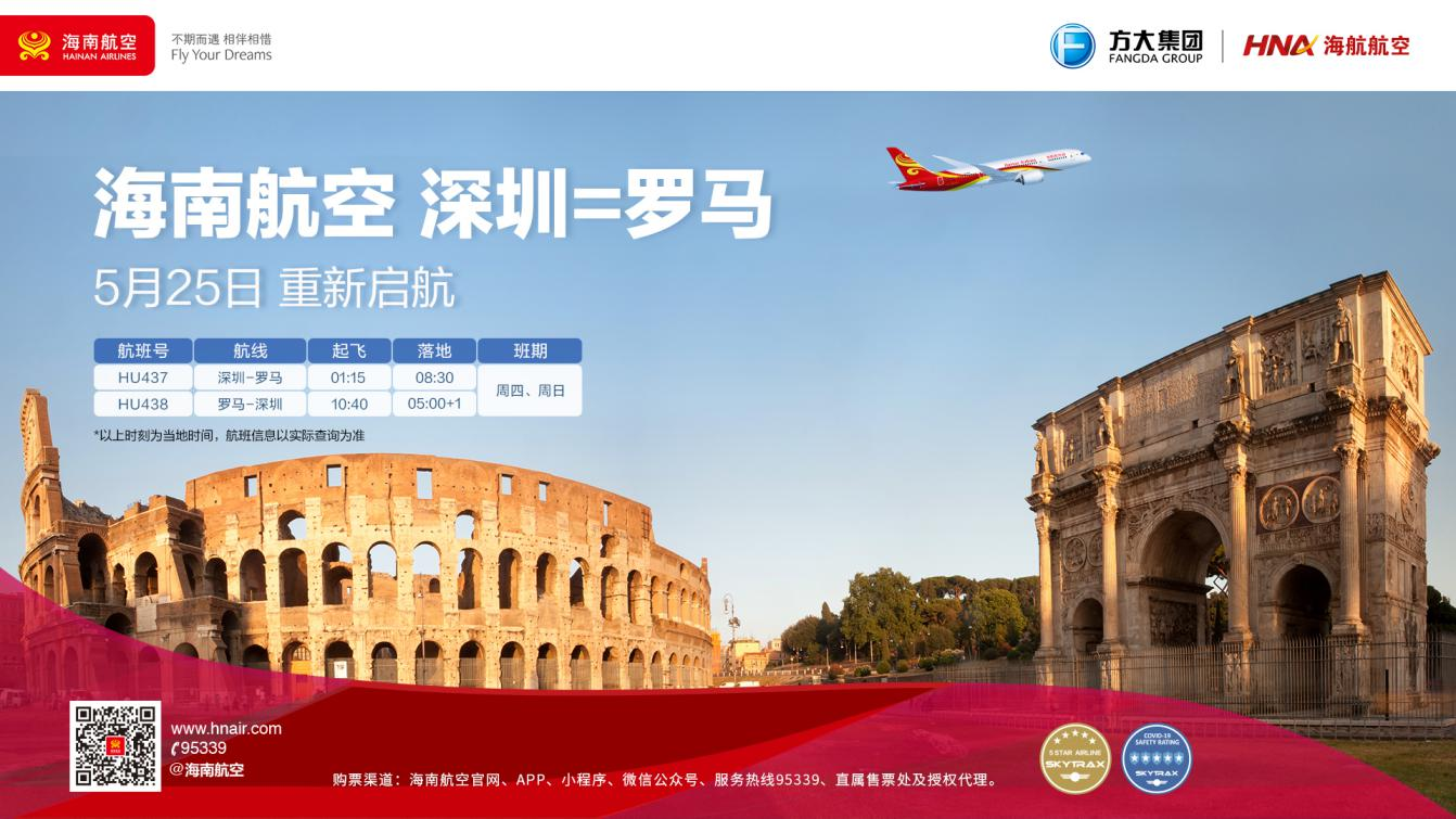 | HU438 | B787 | 罗马—深圳 | 10:40 | 05:00+1 |