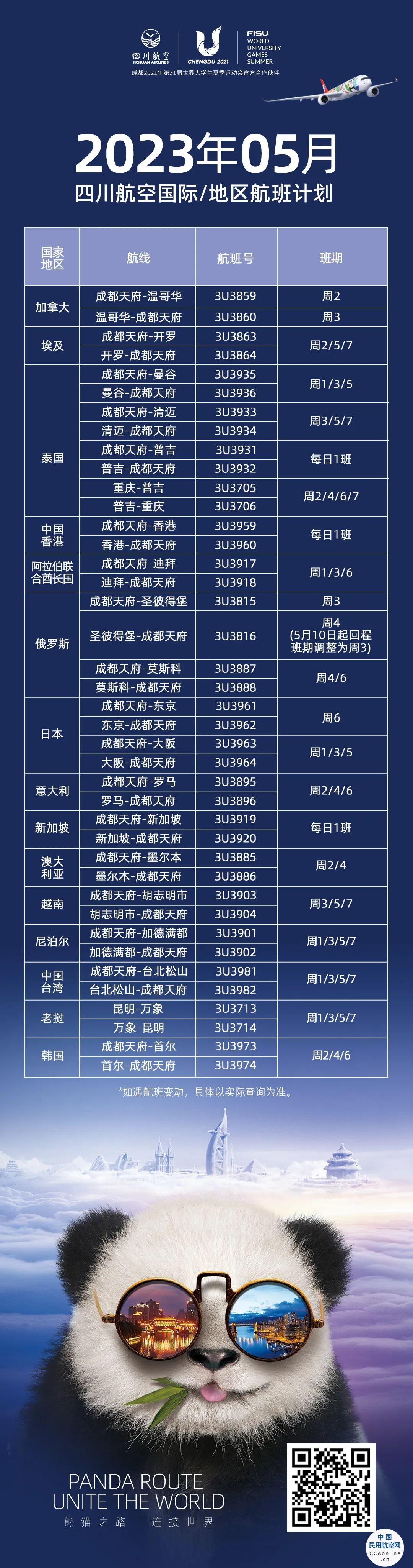 川航5月国际/地区航班计划出炉