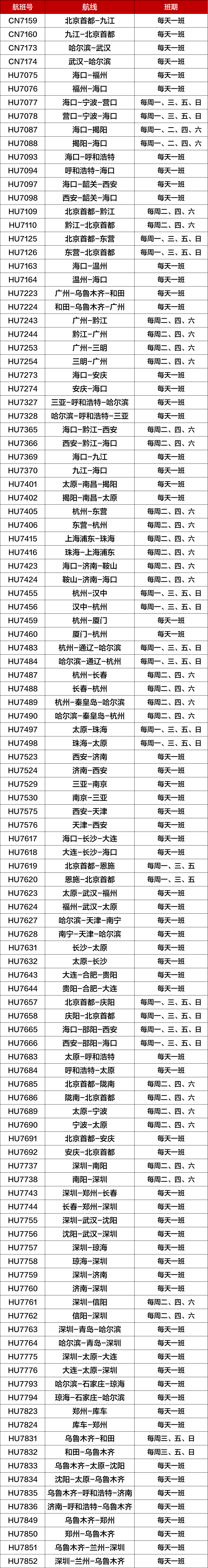 换季后将在海口、北京、广州、深圳、杭州、乌鲁木齐等地新增国内进出港航线110余条;