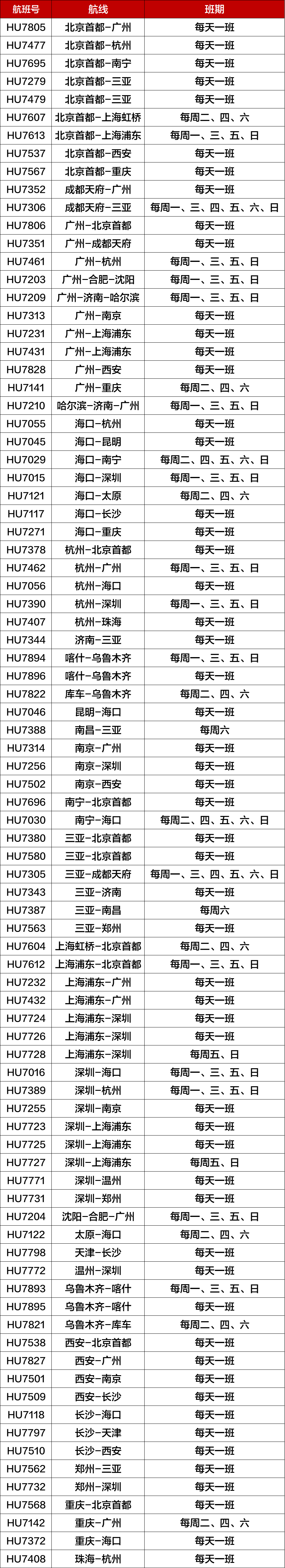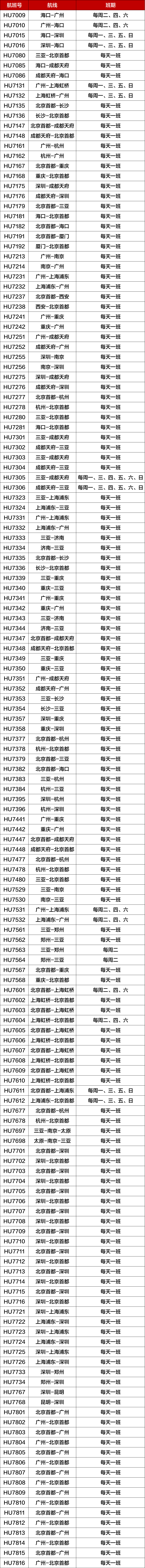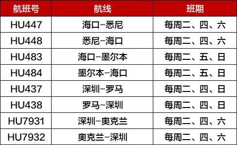 将在北京=广州/上海/杭州/三亚/西安、海口=杭州/长沙/昆明/重庆、海口=悉尼/墨尔本、深圳=罗马/奥克兰等热门国际国内航线增加航班频次;