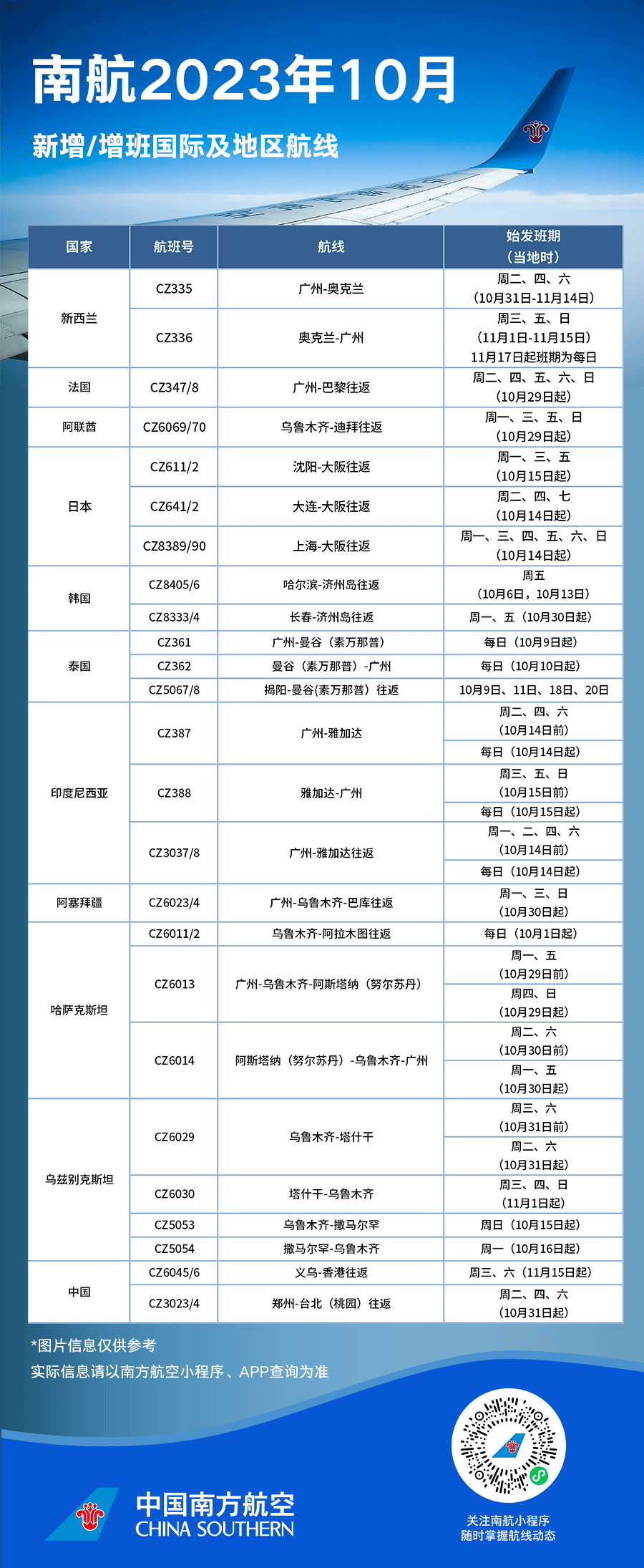 新航季南航新增长春⇌济州岛、义乌⇌香港航线 航空运输头条 航线航班 23年10月12日 编辑 通讯员mk 取消关注 关注 私信 *以上航班计划可能有所变化,请以南航官网、APP、微信小程序等官方渠道实际查询为准。 航旅资讯热点:航班换季南方航空