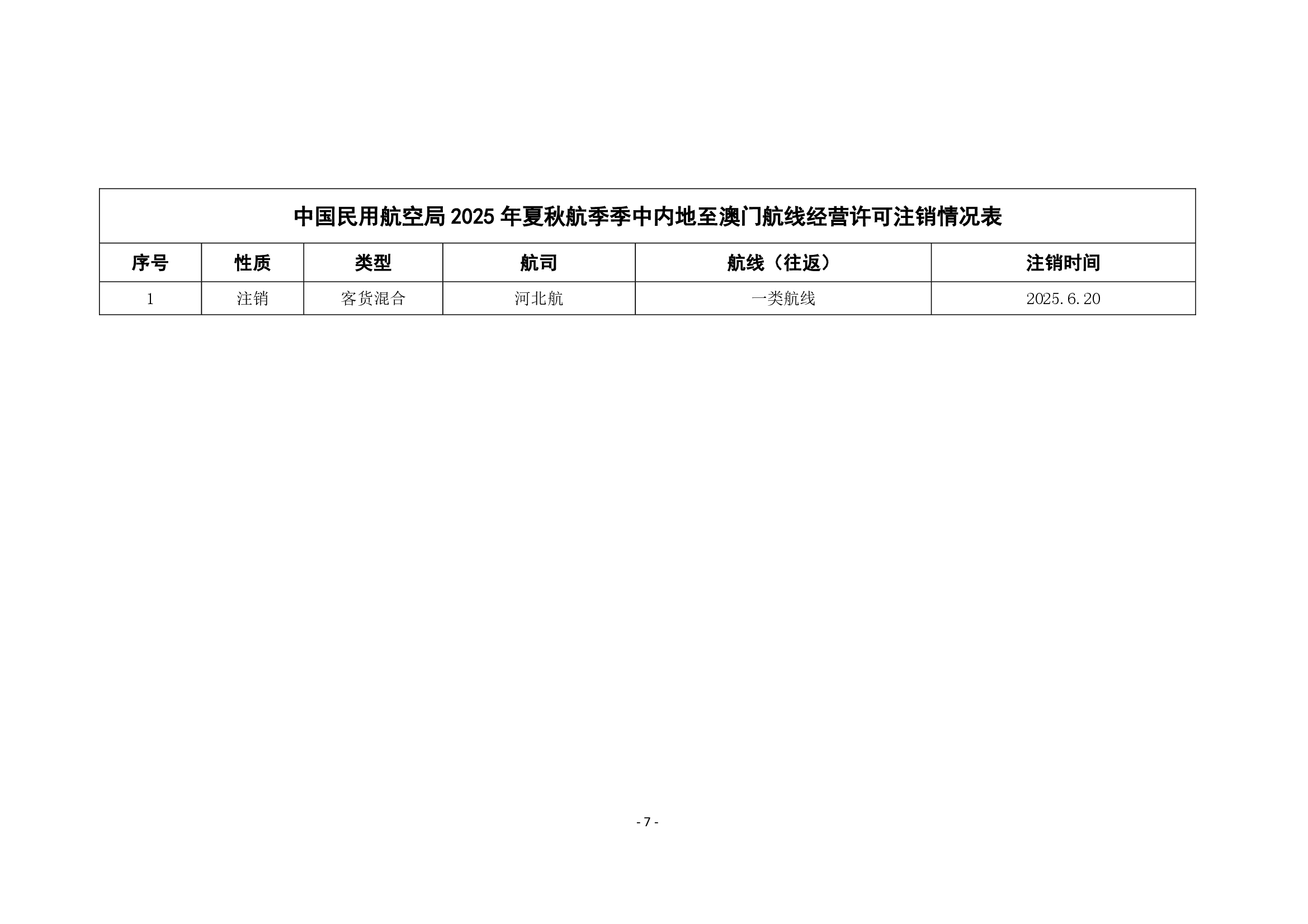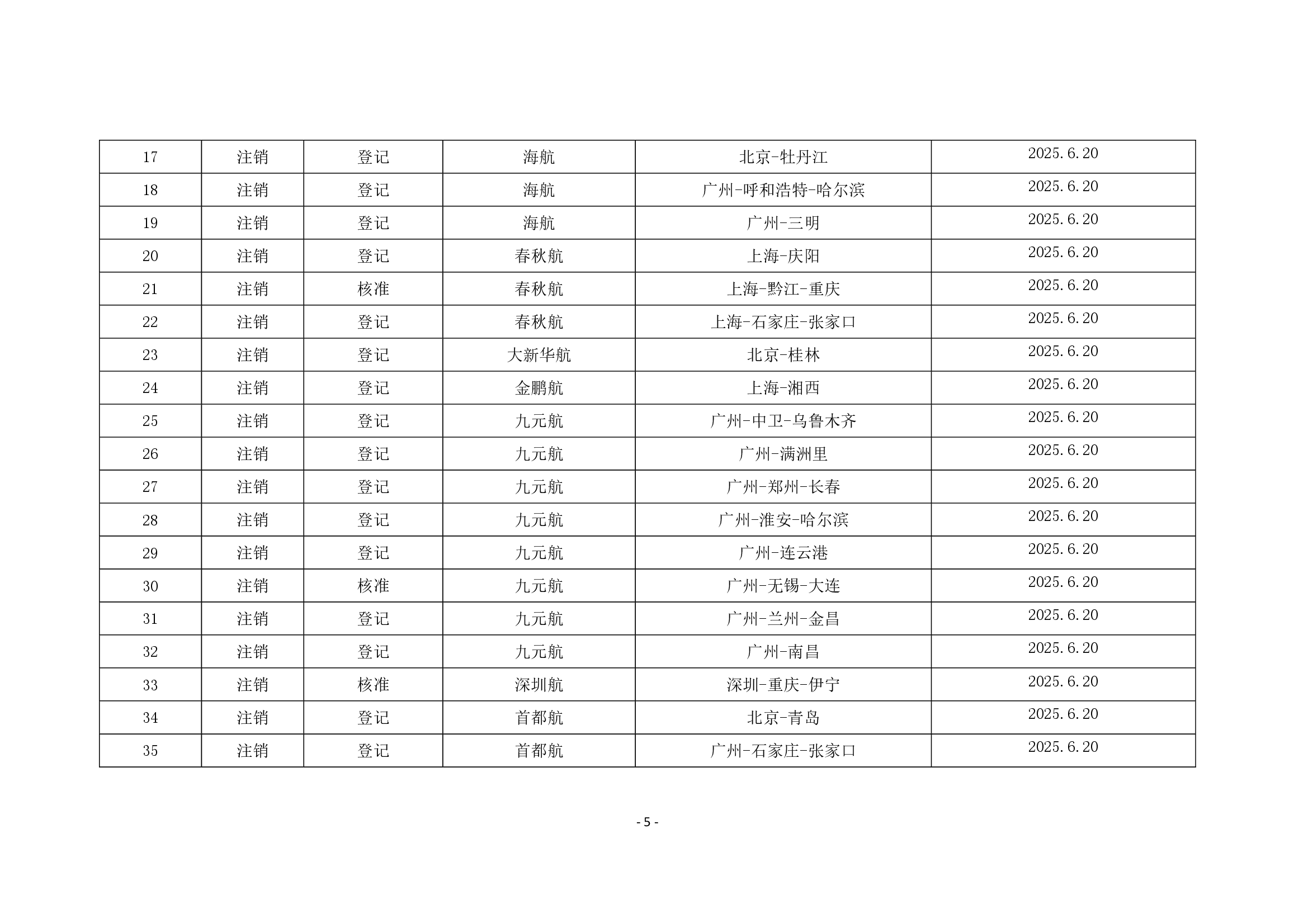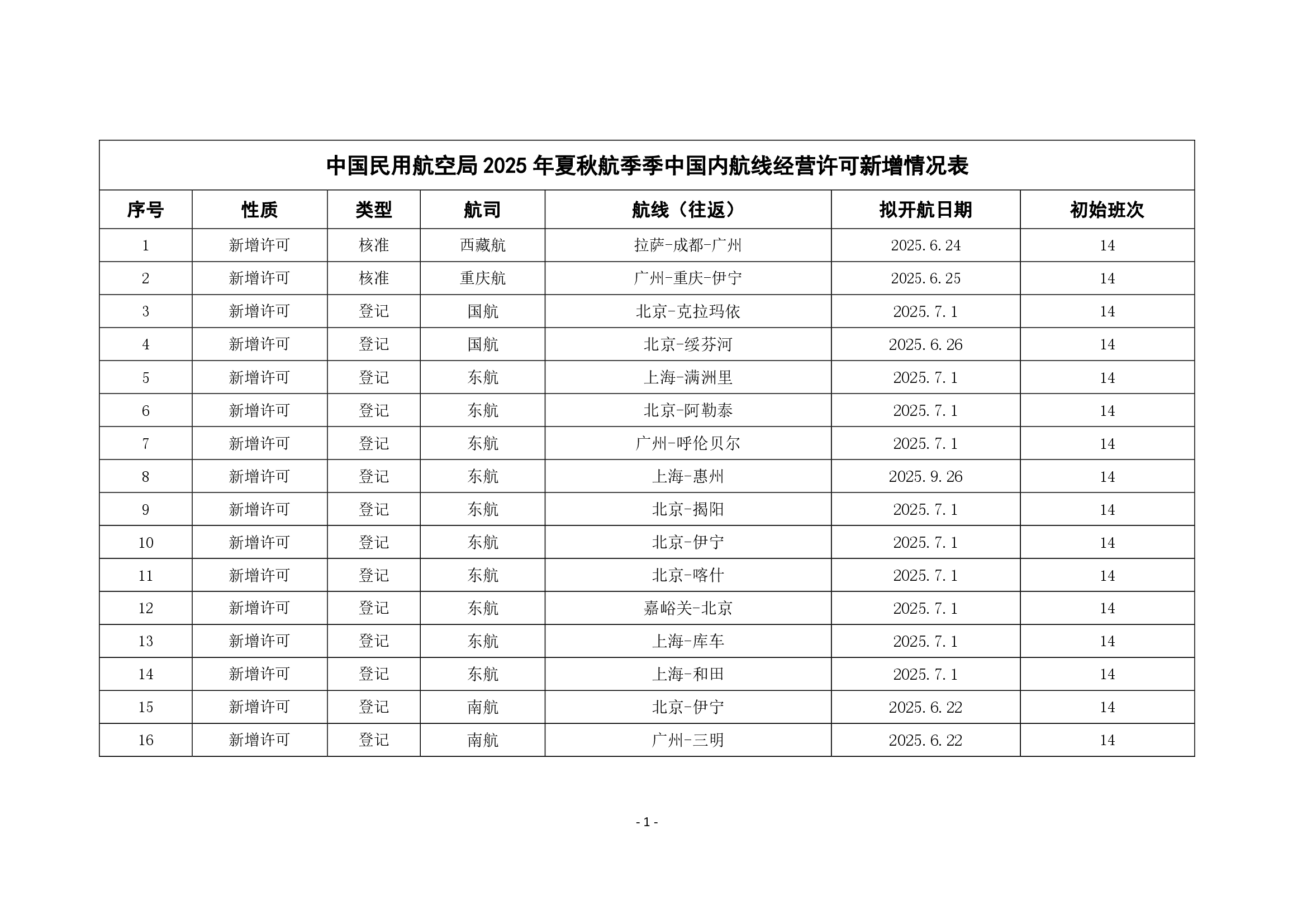 民航局2025年夏秋航季季中颁发、注销国内航线经营许可信息通告