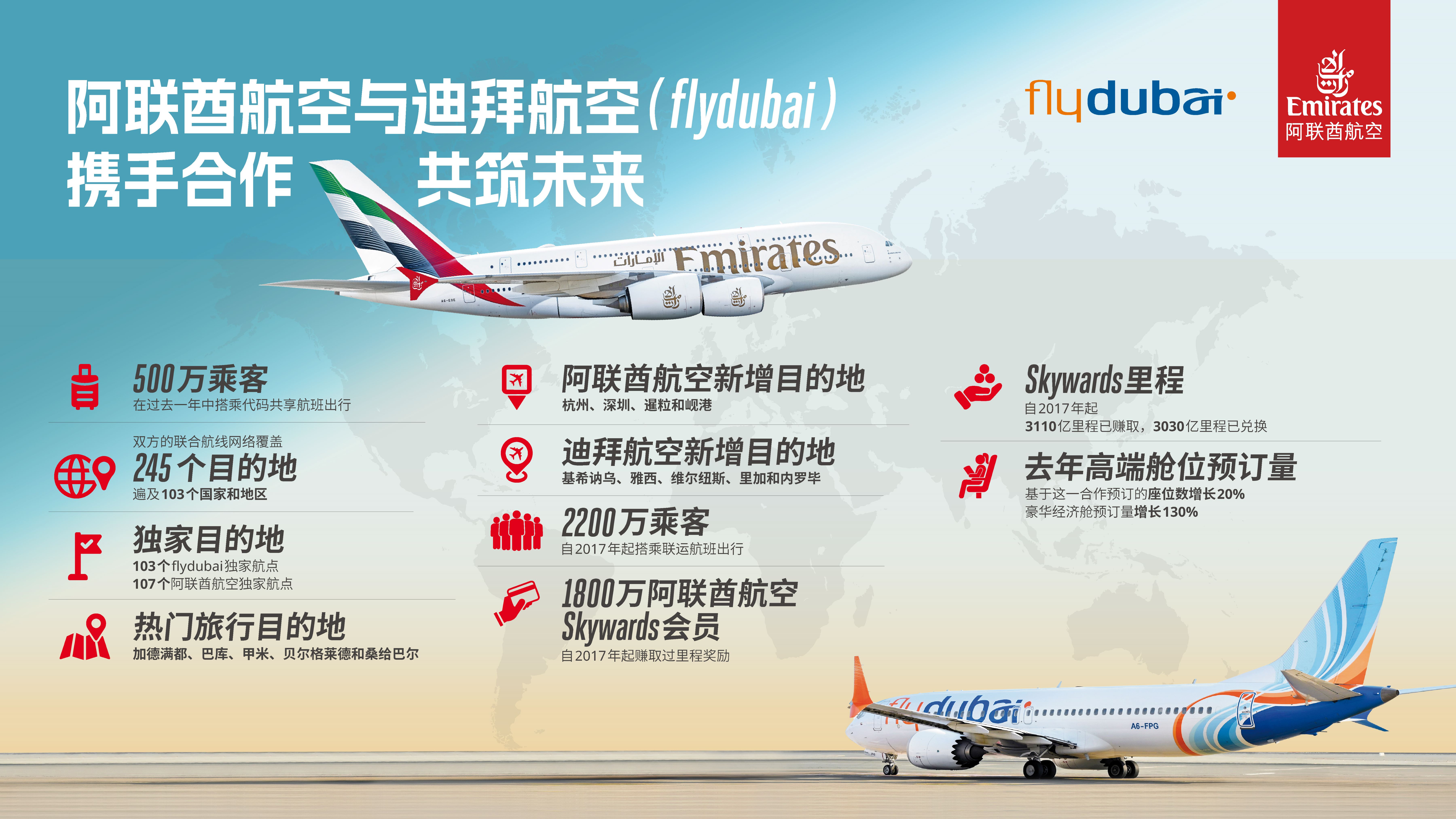 中国民用航空网讯:阿联酋航空与迪拜航空(flydubai)持续深化合作伙伴关系,为业界树立了良好典范。双方正通过联合常旅客计划持续为阿联酋航空Skywards会员带来福利,中国乘客借助双方广泛的航线网络即可享受一站式飞遍全球的便捷体验。