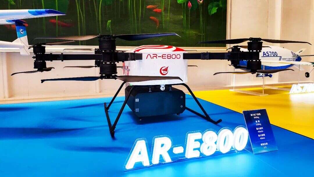 AR-E800是一款纯电驱动垂直起降飞行器,最大载重320公斤,最大航时40分钟,最大航程40公里,采用分布式6共轴旋翼布局,配备可拆卸式多功能货舱,兼具内载运输和外部吊挂两种运载模式。